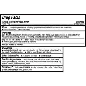 Dependable quality, genuine value since 1901. Temporarily relieves the following symptoms associated with sore mouth and sore throat: Minor discomfort, irritated areas. Non-mentholated. 15 calories per drop.