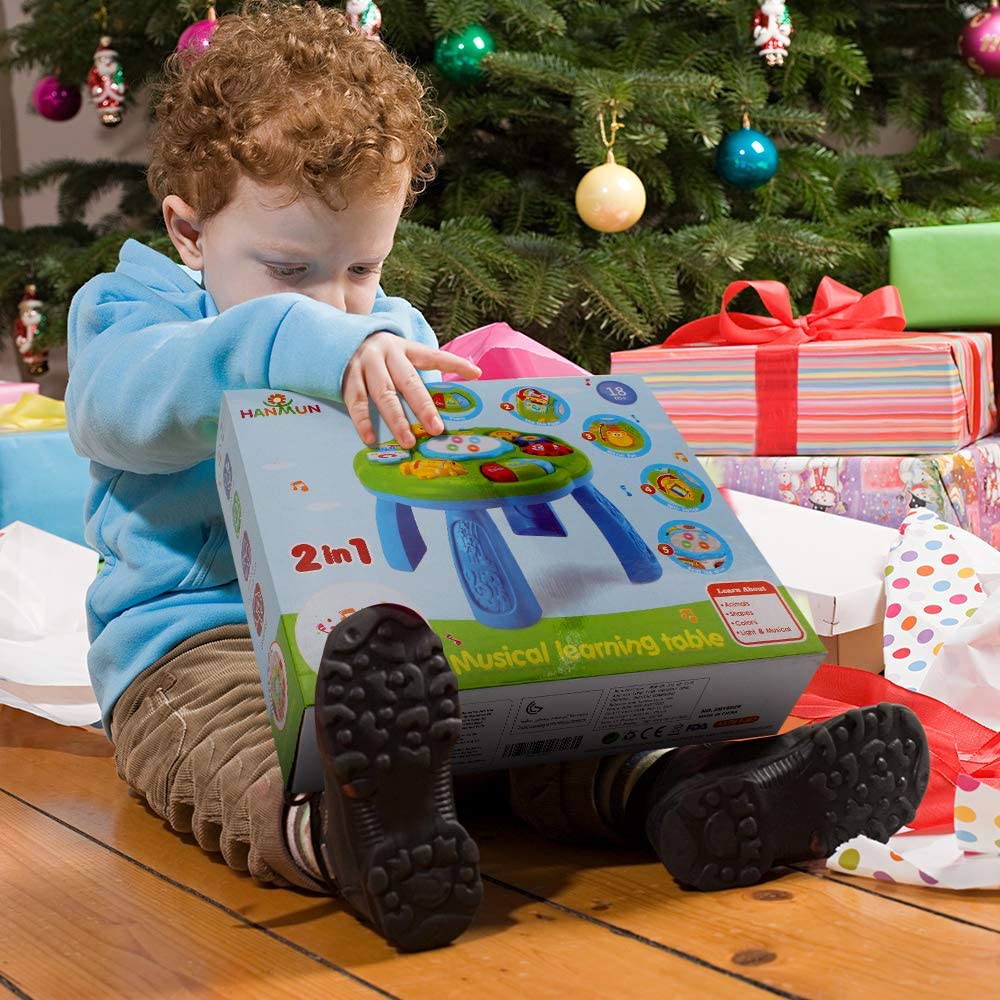 - 【ADDITIONAL FUNCTION】The Hanmun musical table can be tied on the bed for your little infant play it. The tie rope have set with the board. Turn the gears on the infant toy to strengthen fine motor skills