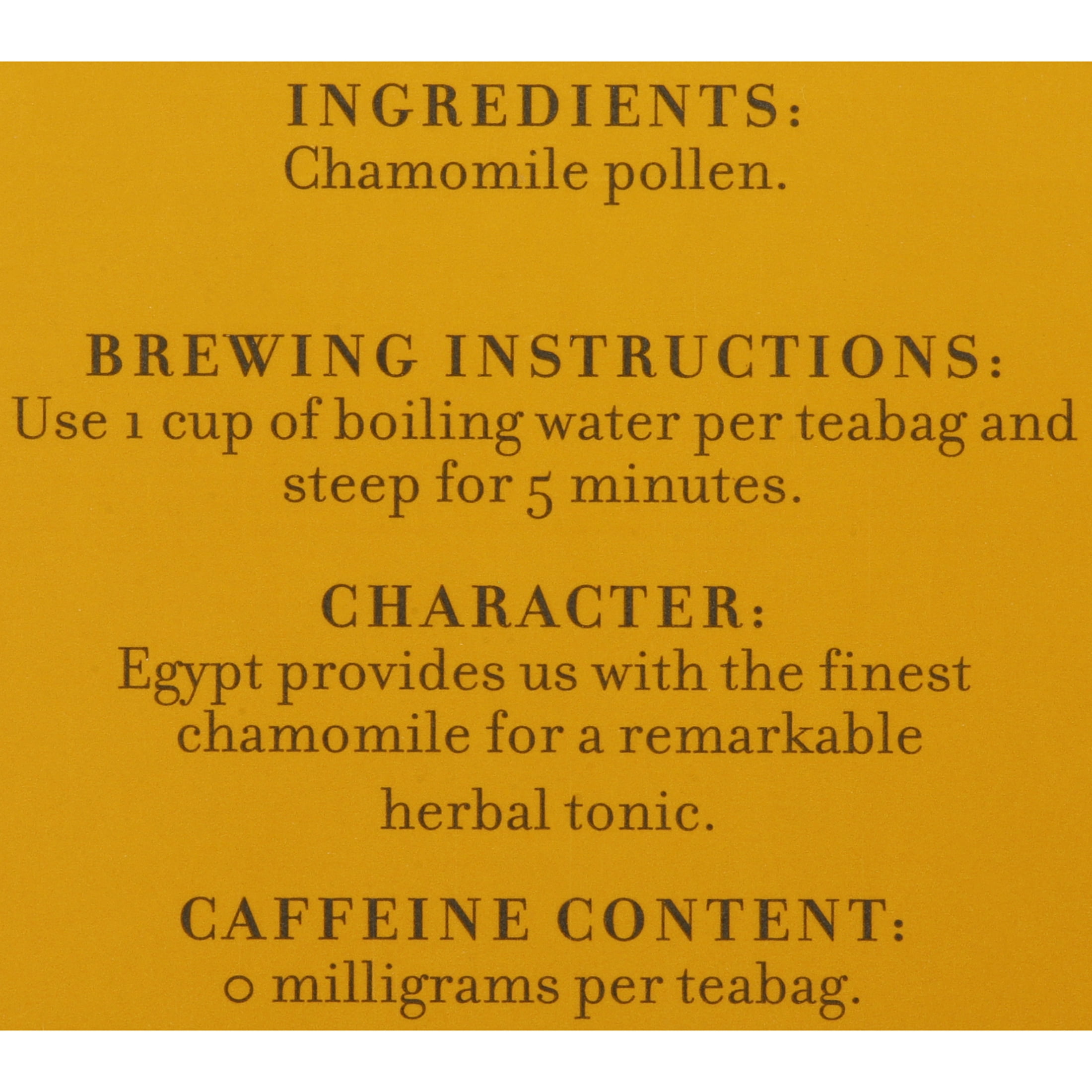 Egypt provides us with the finest chamomile flowers of which we use only flower heads no extenders. This produces a tisane with definite body. Perfect for an evening cup at home, or winding down during a hectic day at the office, our large box of 50 convenient tea bags ensures you’ll run out less often. Each tea bag brews a 6 to 8 oz cup of tea.Harney And Sons Tea Bags Chamomile Herbal 50 Count