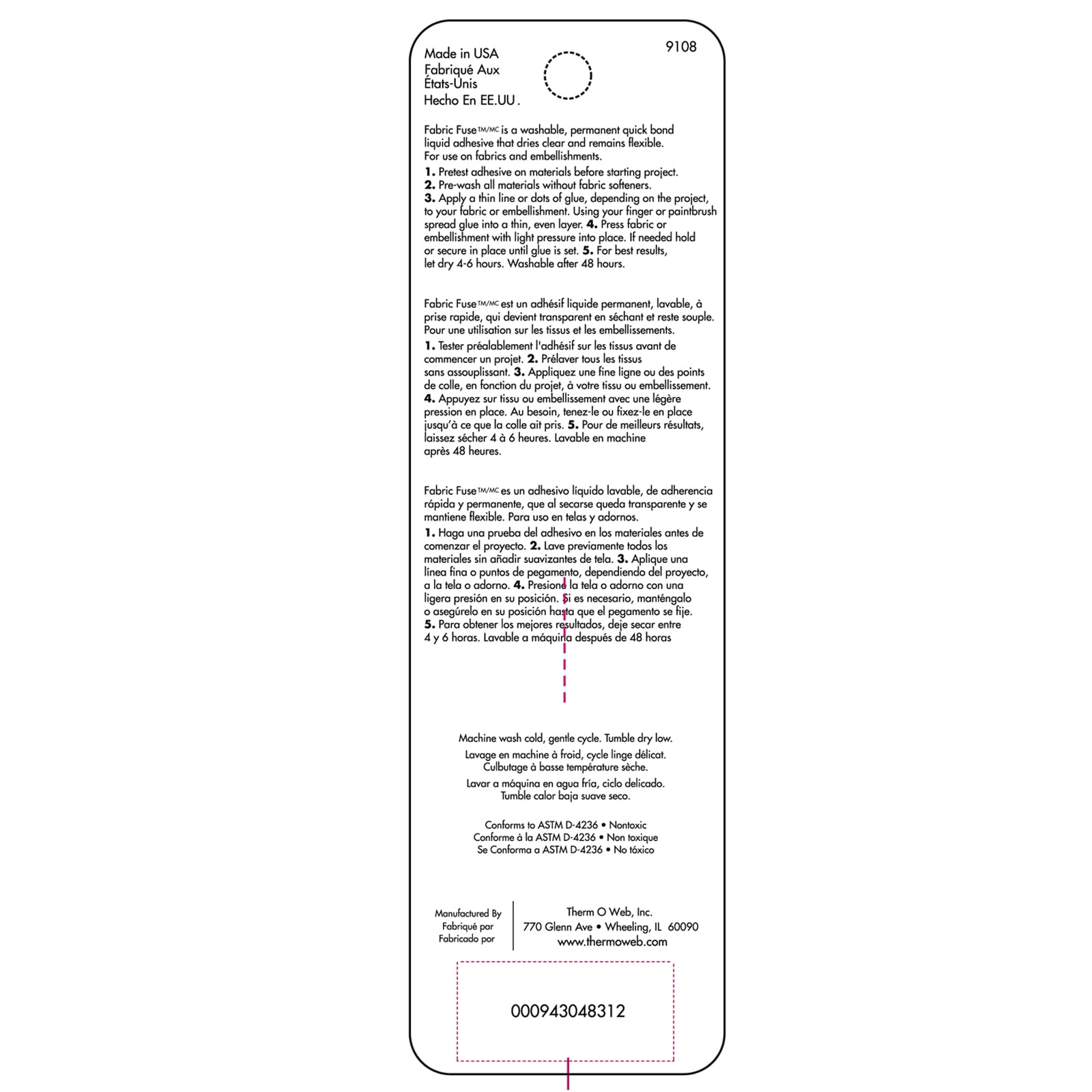 HeatnBond Fabric Fuse Liquid Adhesive is a washable, permanent quick bond, nontoxic liquid adhesive that dries clear and remains flexible. For use on fabrics and embellishments.