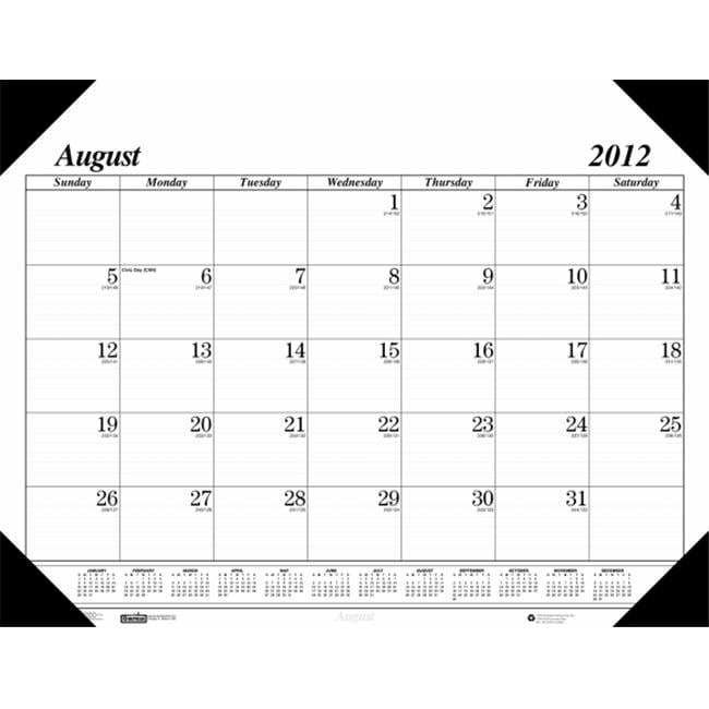 House of Doolittle 17 Month Economy Academic Refillable Desk Pad calendar August – December with reinforced leatherette corners. Printed on 100% recycled paper containing 100% post-consumer waste with soy inks. Made in the USA.
