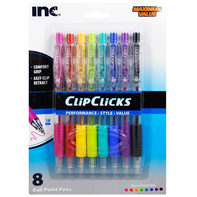 Inc. Clip Click Ball Point Retractable Pens -8 Multi-Color assorted color Ink 1.0 mm Pens