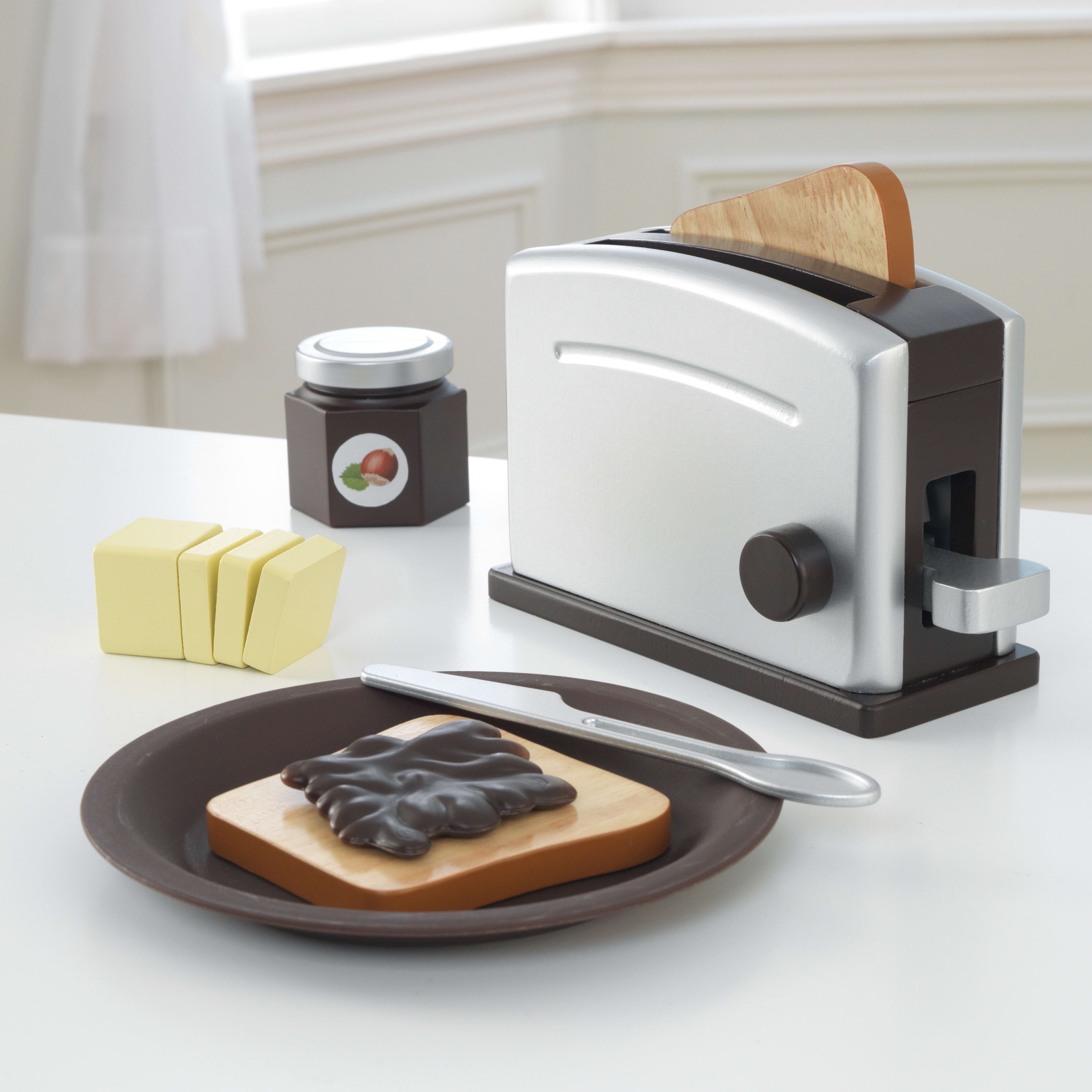 KidKraft Espresso Toaster Play Set with Pushable Toaster Handle and 8 Pieces