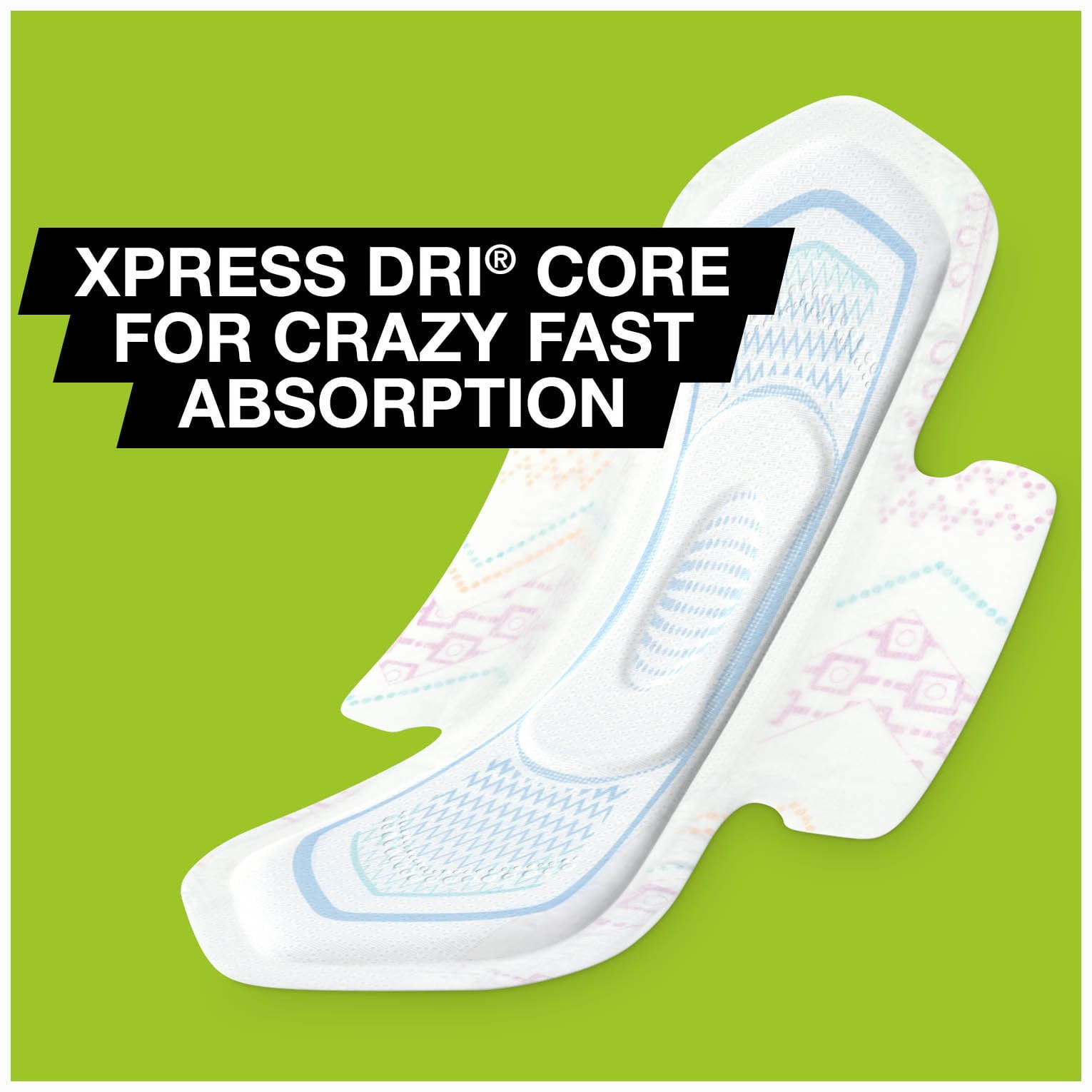 Your heaviest flow days won’t stand a chance with U by Kotex Clean Wear Ultra-Thin Pads Heavy Flow with Wings. These period pads for women feature the Xpress DRI Core that quickly draws in and locks away wetness. The uniquely shaped Tru-Fit wings help keep this feminine pad in place to prevent bunching so it keeps up with you and your flow. These heavy absorbency pads are designed with super soft sides to help you move with comfort and ease, plus overnight protection to help you get a good night’s sleep. These sanitary napkins are lotion-free and fragrance-free. Each pad is individually folded in an easy-open wrapper with four colorful designs. U by Kotex feminine products are now FSA-eligible in the U.S. Packaging may vary from images shown.
