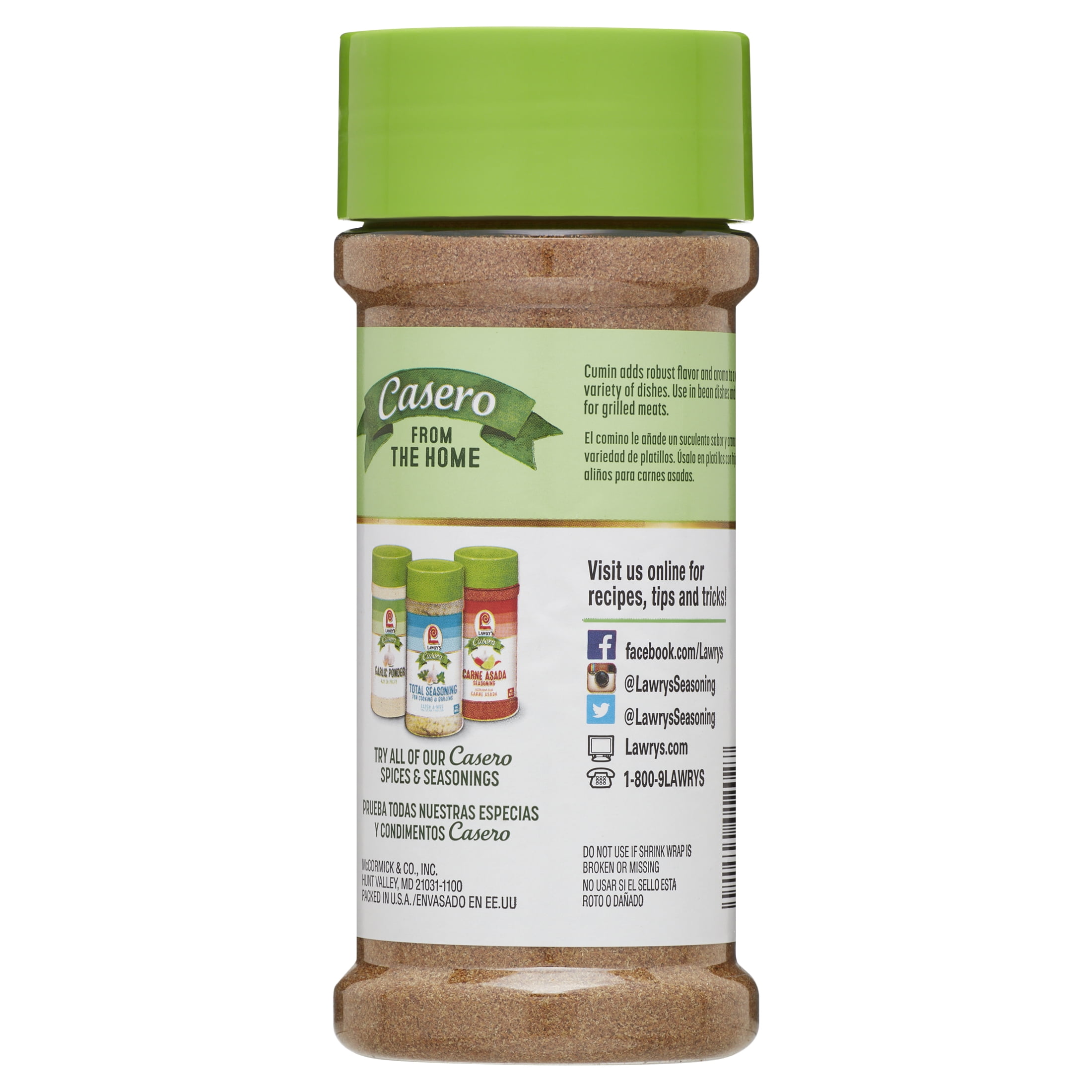 Lawry’s Casero Ground Cumin (Comino Molido) adds its signature warm, earthy flavor to cuisines around the world. It is a key ingredient in seasoning blends for Southwestern tacos and chili, Indian curries, and Middle Eastern couscous and hummus. Cumin is also an essential spice in Latin cuisine. In Mexican cooking, it seasons moles, tamales, meatballs (Albondigas) and adobo sauces. South American dishes, including Peruvian roast chicken (Pollo a la Brasa) and Argentinian beef empanadas (Empanadas Mendocinas), get their robust flavor from cumin. Cuban recipes for black beans (Frijoles Negros) and picadillo are both fragrant with the spice. Since 1938, Lawry’s is the brand you know and trust for spices and seasonings that make a good meal great.