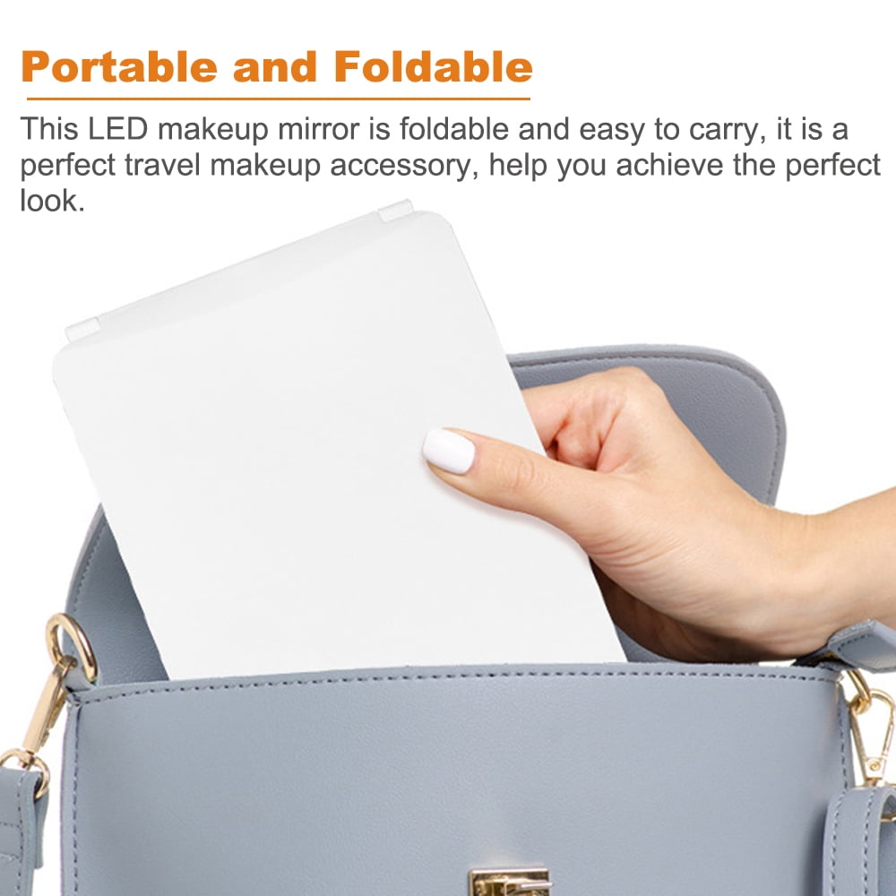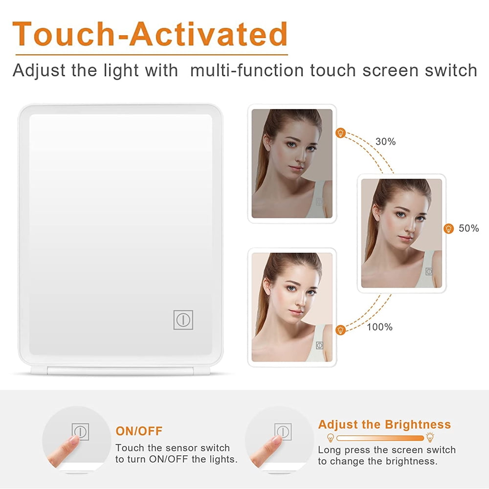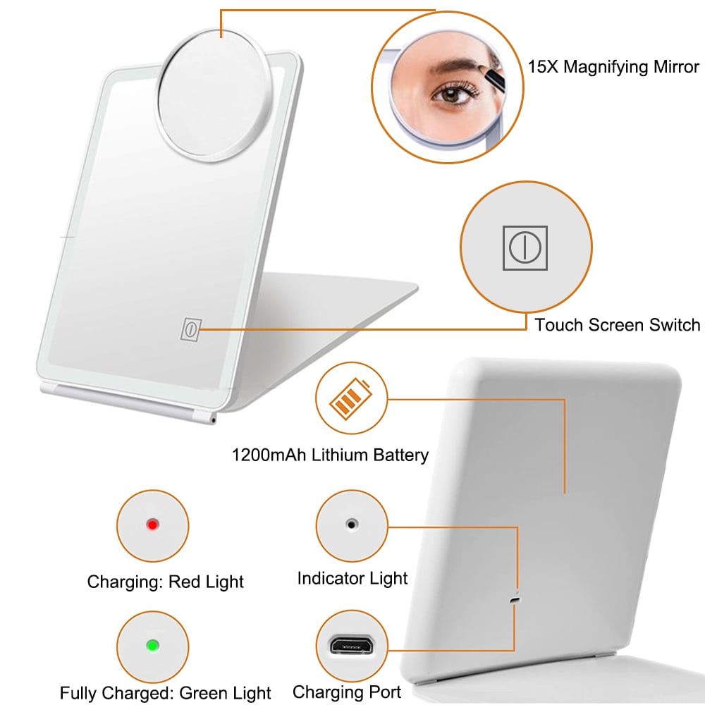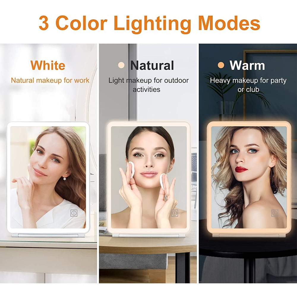 Lighted Makeup Mirror with 60 LED Lights, Portable Folding Travel Mirror LED Vanity Mirror with 15X Magnifying Mirror, 3 Color Lights, Touch Screen, USB Rechargeable