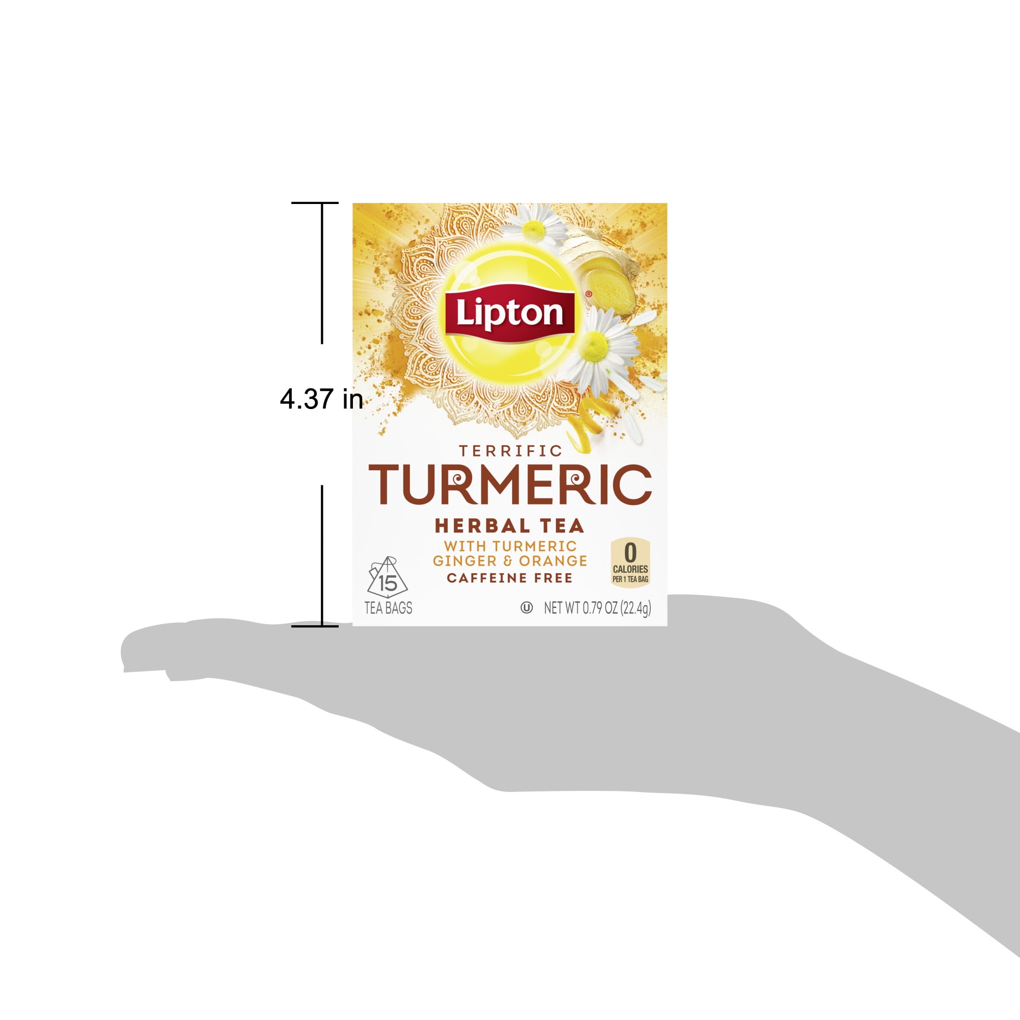 Lipton Terrific Turmeric Herbal Tea, Ginger Orange, Caffeine-Free, Tea Bags 15 Ct