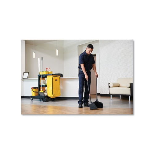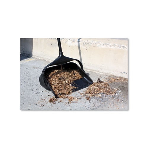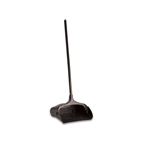 The Rubbermaid Commercial Executive Lobby Pro Dust Pan is ideal for malls, restaurants, lobbies, and more. Made from durable injection molded plastic, this essential cleaning tool features smooth rear wheels that improve wear resistance. Discreet and reliable, the lobby dust pan will not stain, discolor, or absorb odors and reduces strain on staff by minimizing bending and scooping. Materials: Polypropylene with Vinyl Coated Steel Handle Width: 12 1/2" Handle Length: 27.5" Colors: Black.