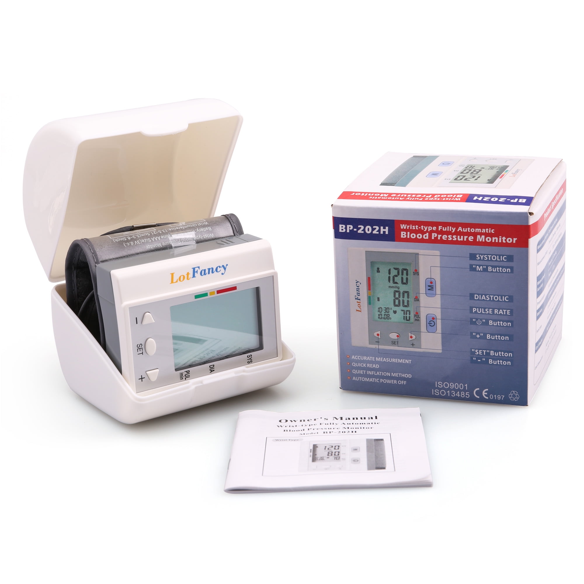 PACKAGE INCLUDES: 1 x blood pressure monitor, 1 x plastic carrying case, 1 x user manual
