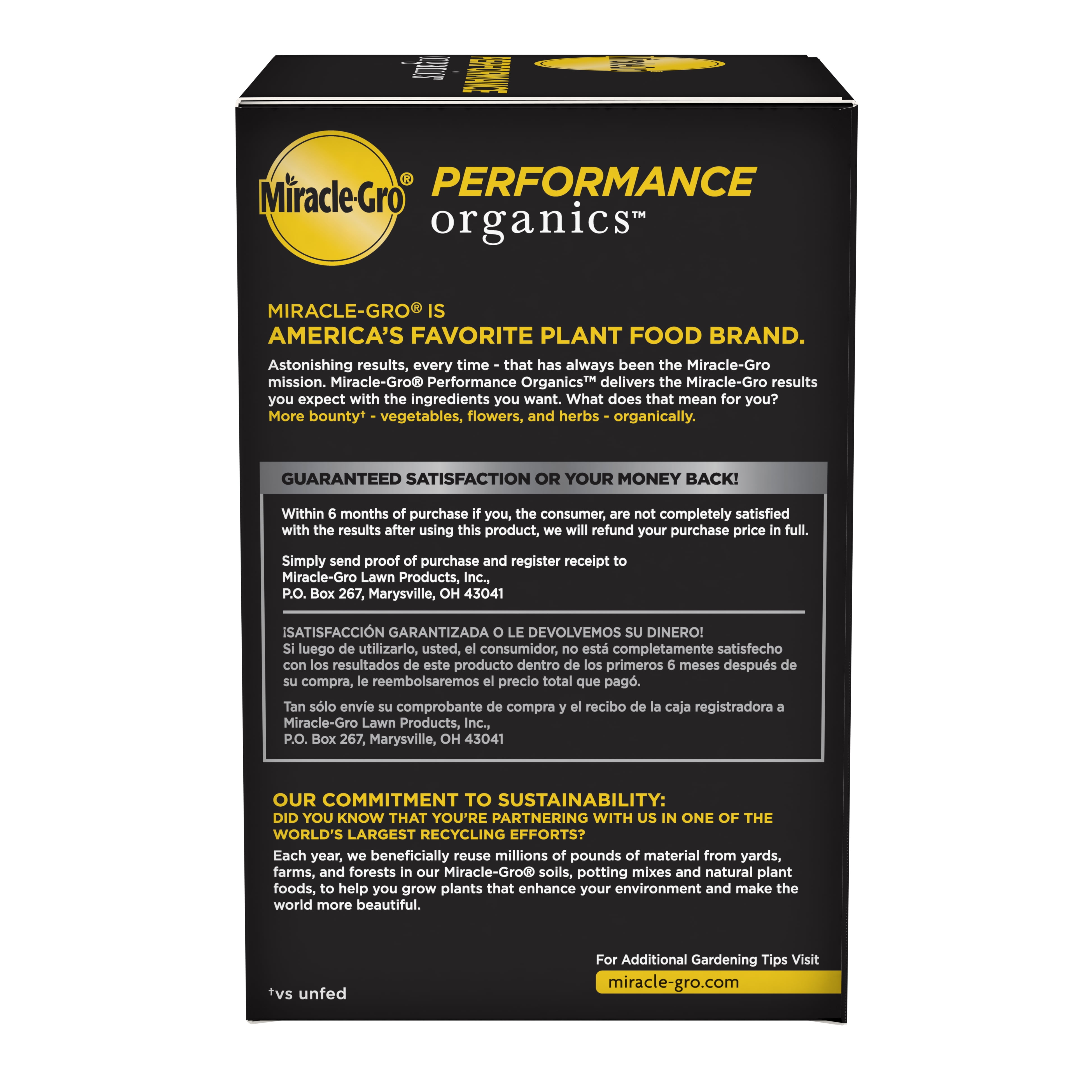 Astonishing results, every time – that has always been the Miracle-Gro mission. Miracle-Gro Performance Organics All Purpose Plant Nutrition delivers the Miracle-Gro results you expect with the ingredients you want. What does that mean for you? More bounty – vegetables, flowers, and herbs – organically (vs. unfed plants). Feeds instantly, and enhanced with micronutrients for high performance results.