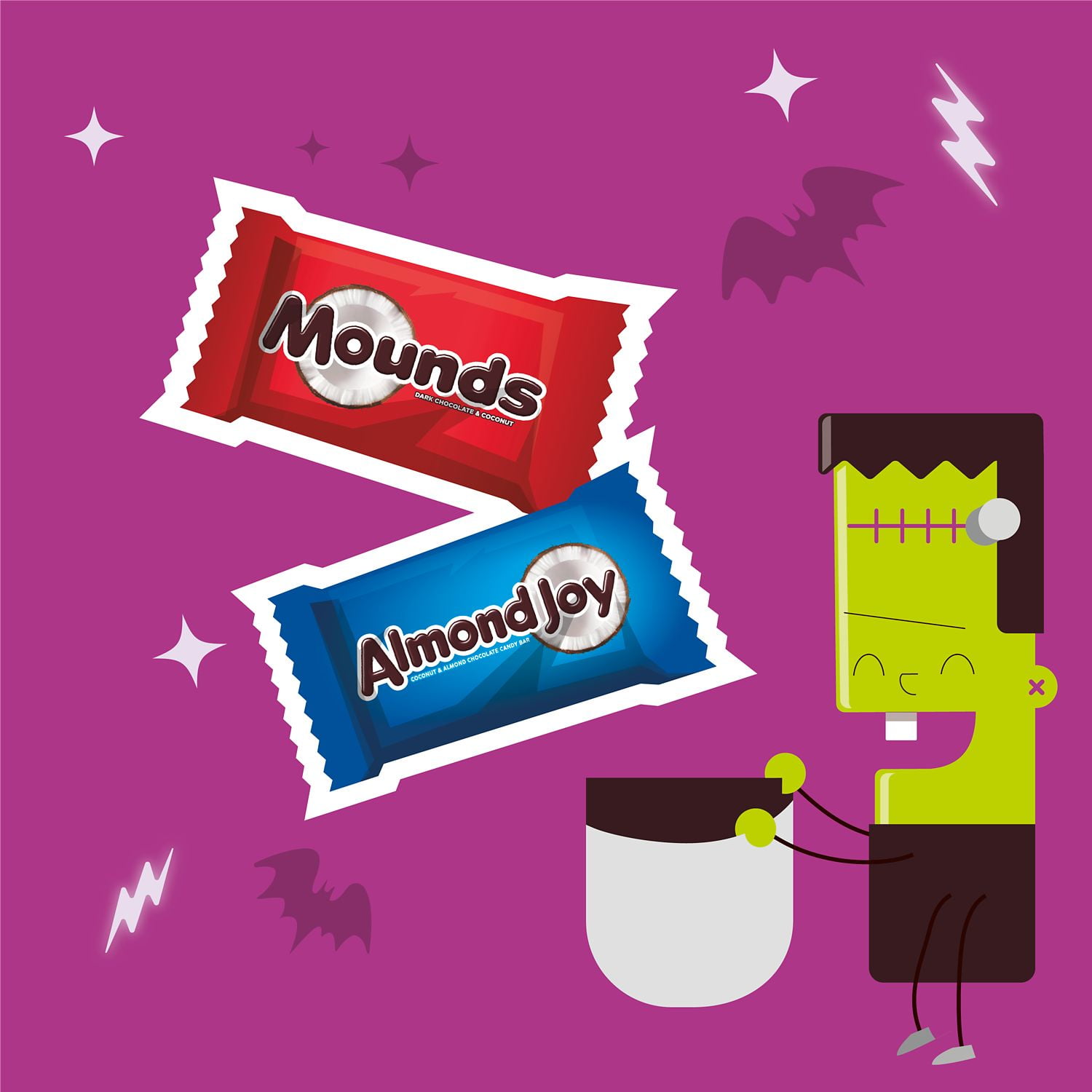 - Contains one (1) 32.1-ounce party pack of MOUNDS and ALMOND JOY Miniatures Chocolate and Coconut Assortment Candy