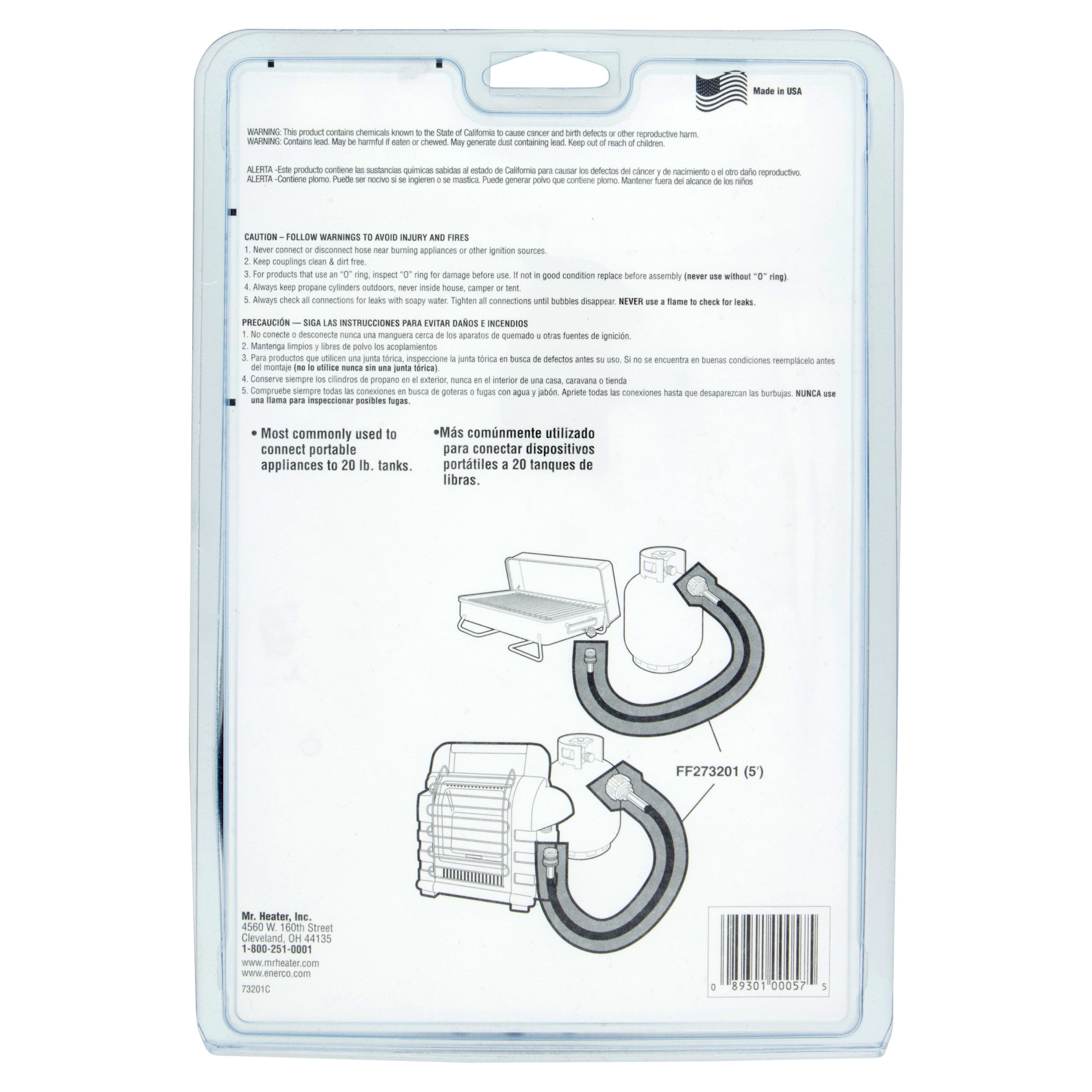 Mr. Heater 5-foot propane hose assembly is most commonly used to connect low-pressure appliances to 20 lb. propane tanks. The assembly includes an acme nut connected to a high-pressure hose with a 1-inch 20-male throwaway cylinder thread. Hand tightens swivel on both ends. Most commonly used to connect portable appliances to a 20 lb. tank.