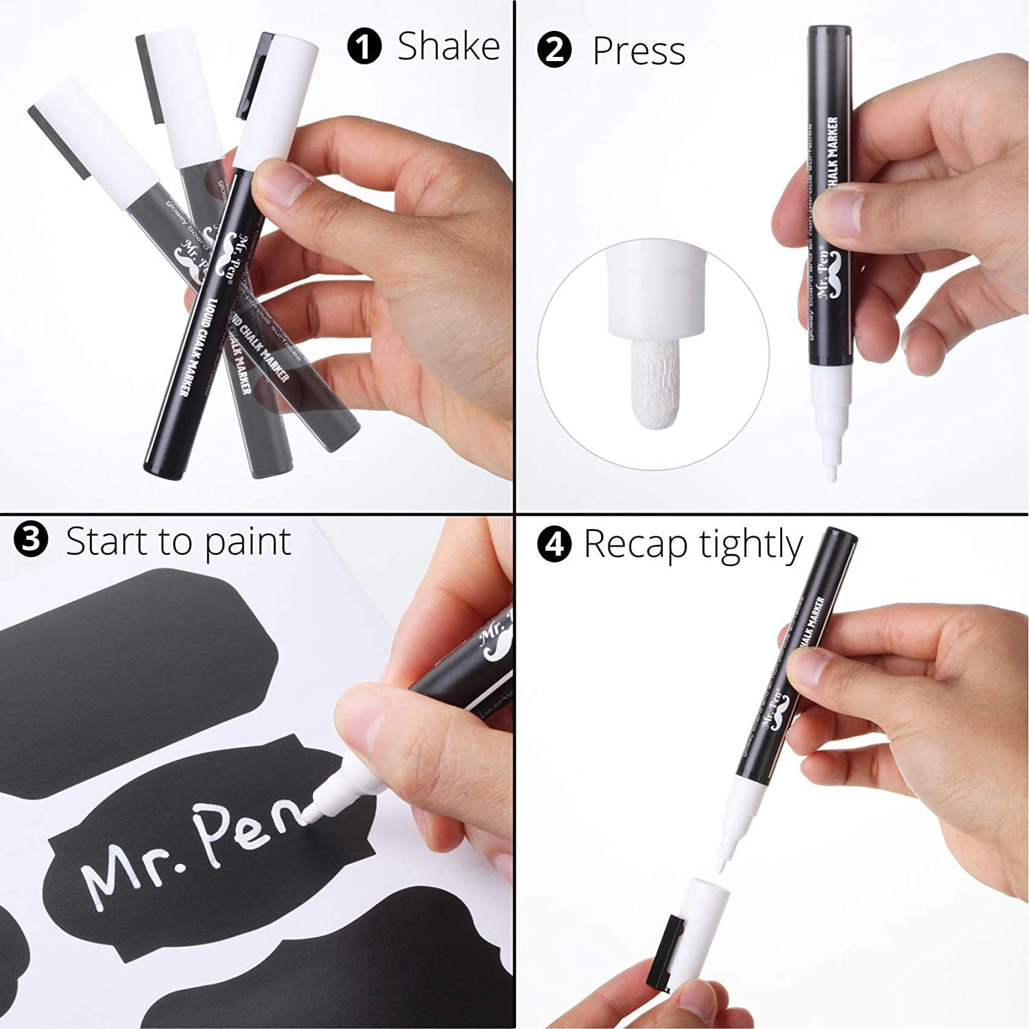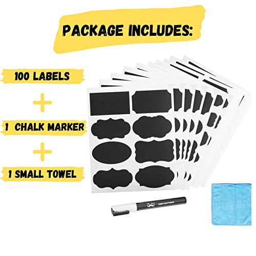 Mr. Pen- Chalkboard Labels, 100pc, Assorted Shapes, 1 White Chalk Marker and Small Towel, Labels, Label Stickers, Labels for Storage Bins, Sticker Labels