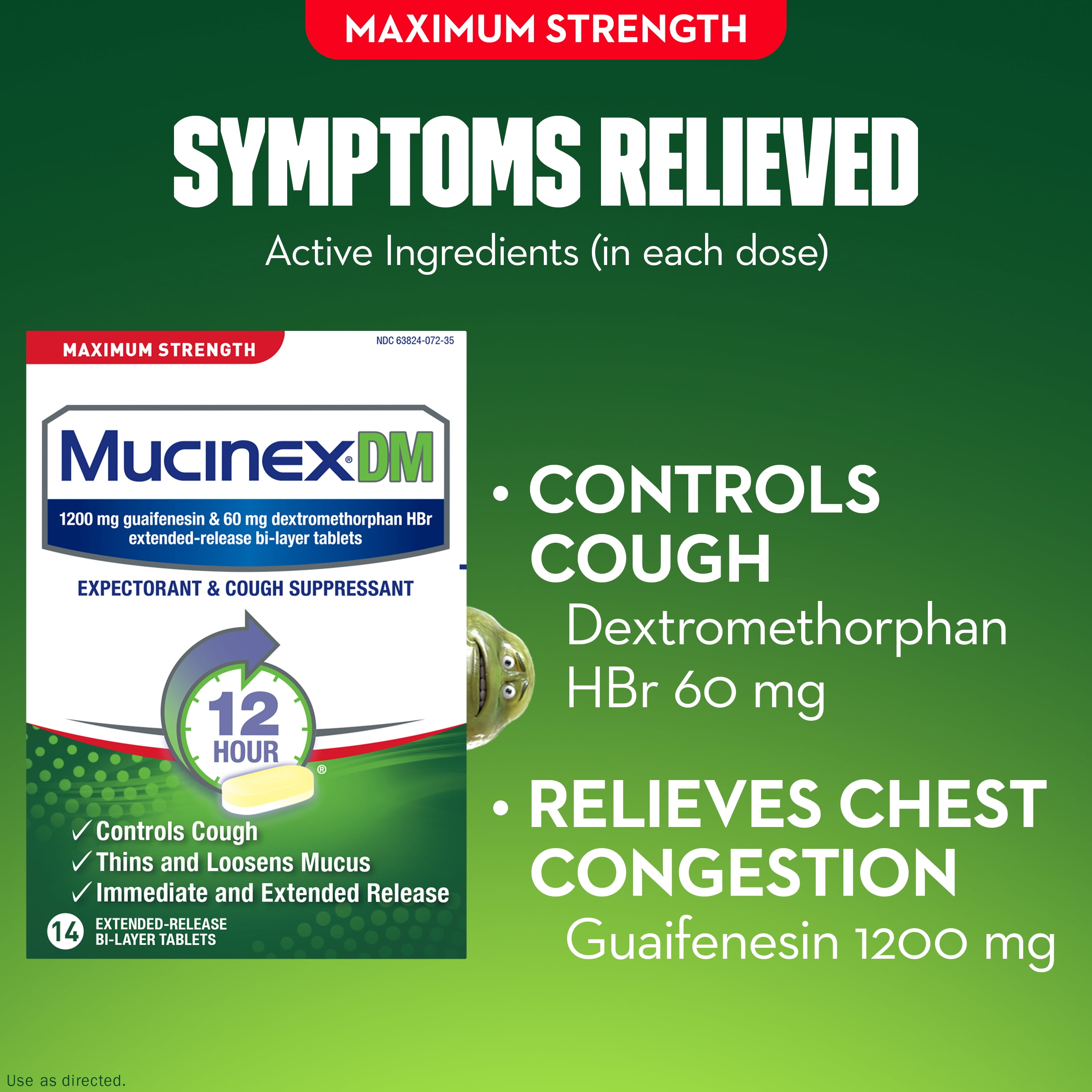 - POWERFUL SYMPTOM RELIEF: Maximum Strength Mucinex DM 12 hour controls cough, relieves chest congestion and thins & loosens mucus.