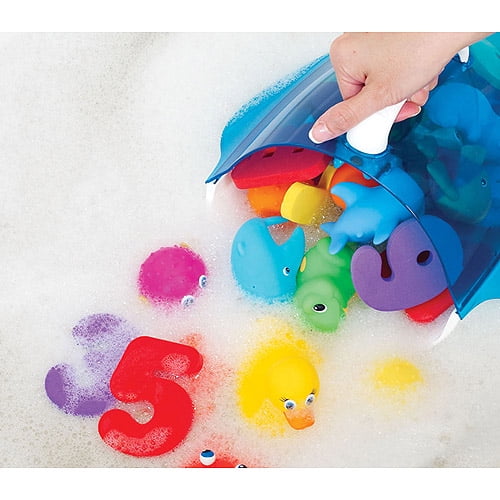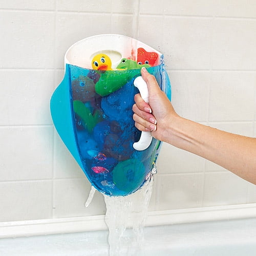 Munchkin Scoop Drain and Store Bath Toy Organizer, Includes Adhesive Strips, Blue