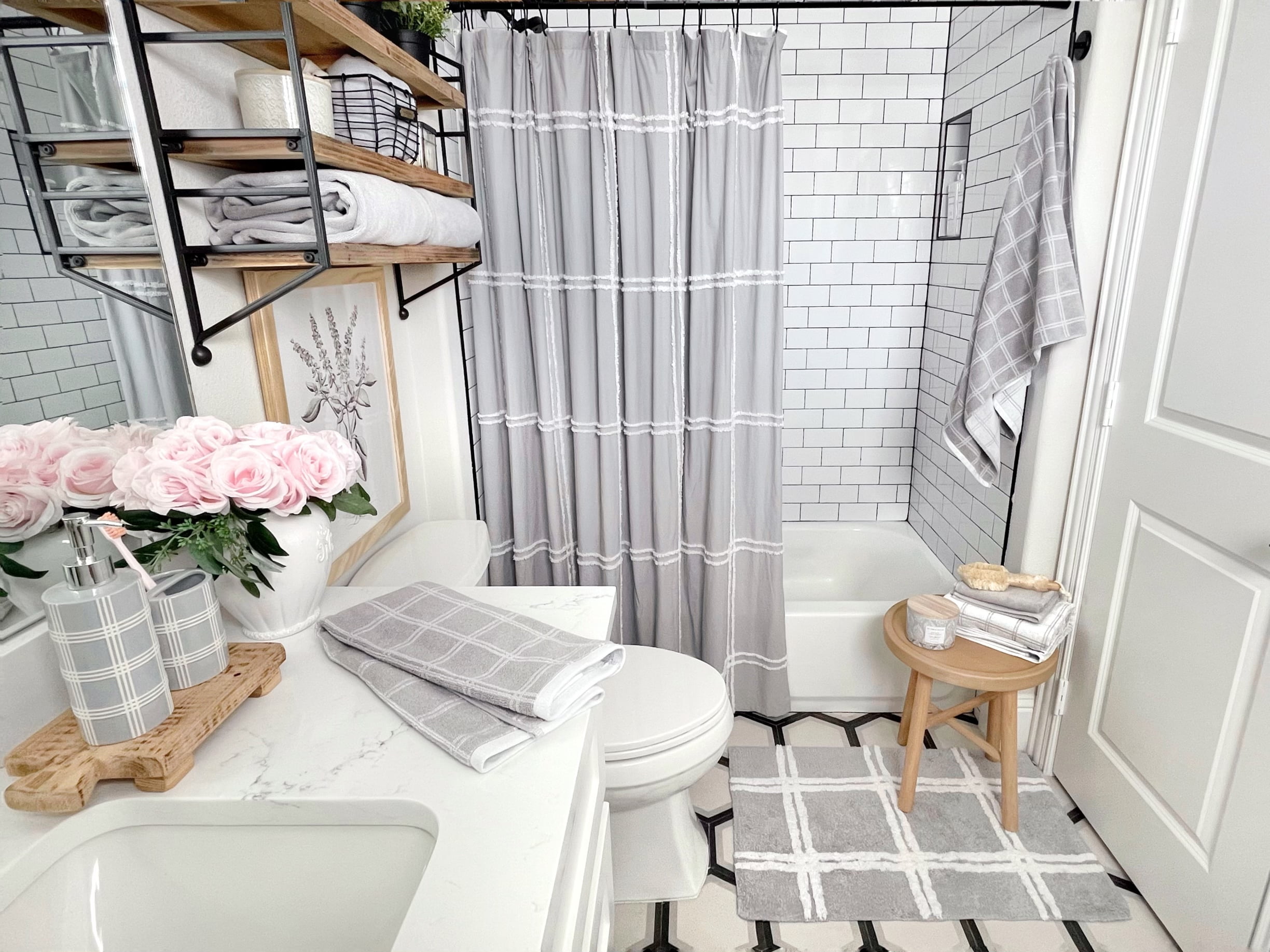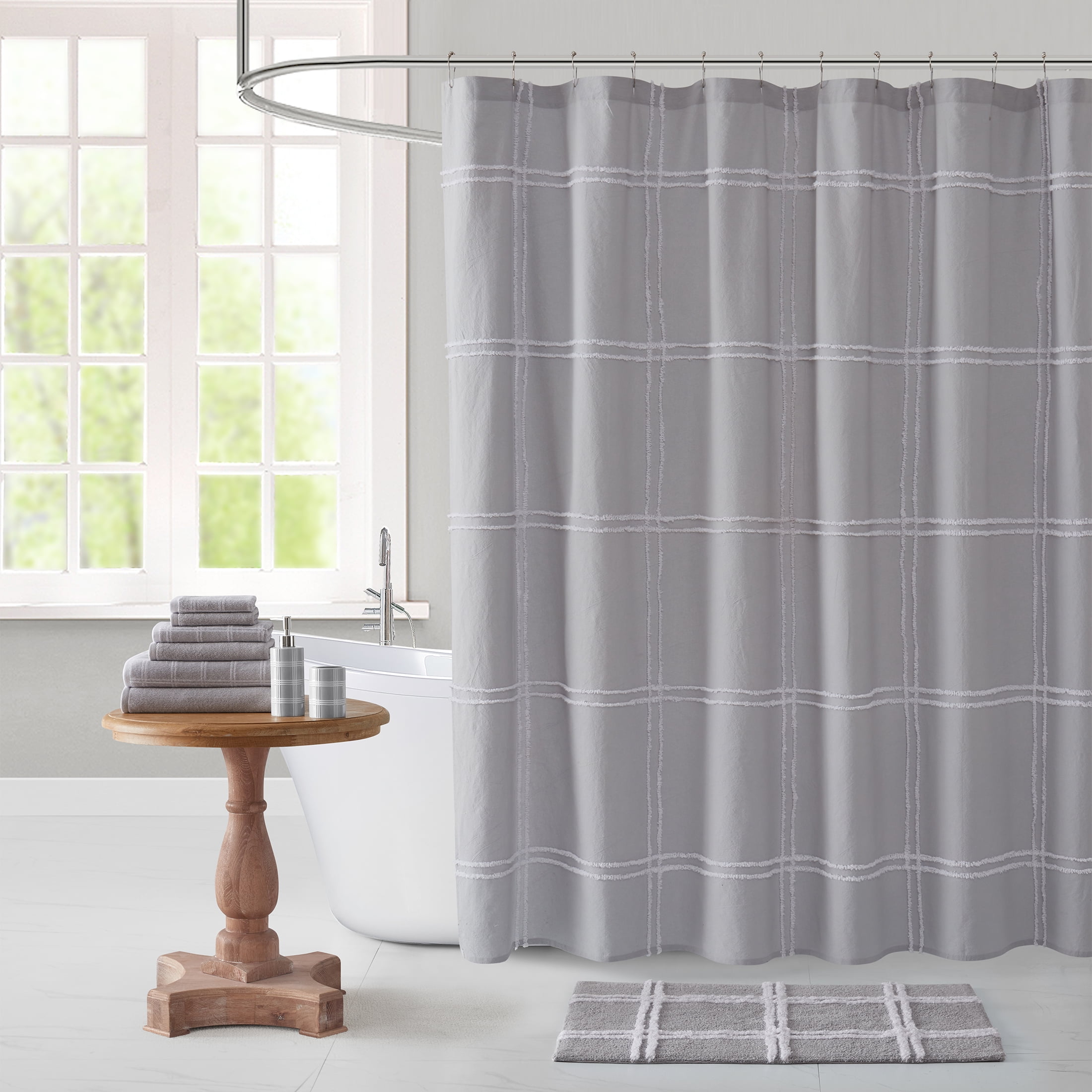 My Texas House Stafford Gray Plaid Tufted Cotton Shower Curtain, 72′ x 72′