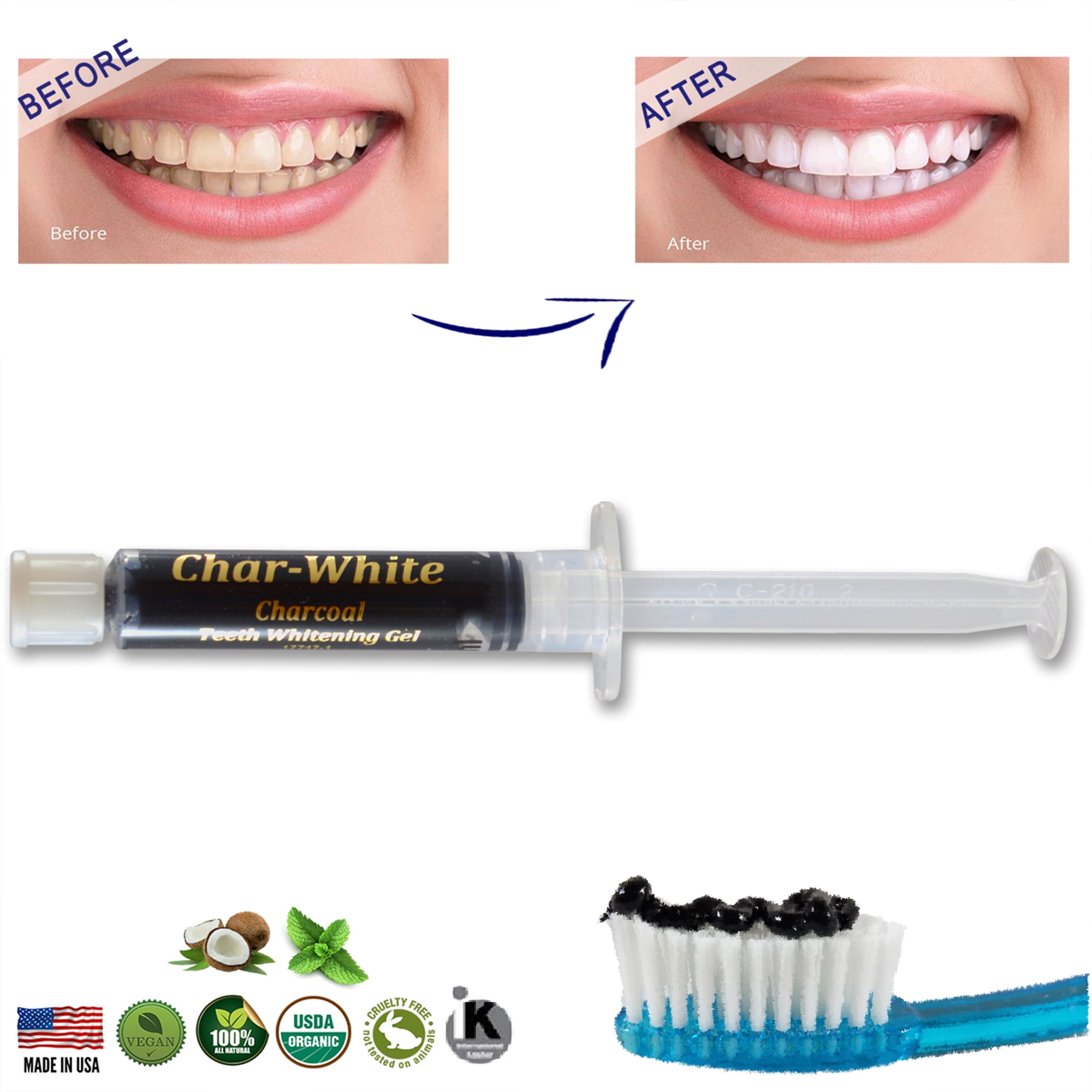 ✔Your Kit includes: (1) 5mL teeth whitening gel syringe, containing Activated Teeth Whitening Charcoal Gel and instructions sheet.