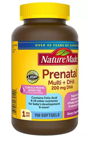 - Prenatal Nutritional support supplement: contains one 30 count bottle of Nature Made Prenatal Multivitamin with 200 mg DHA Softgels for a 30-day supply