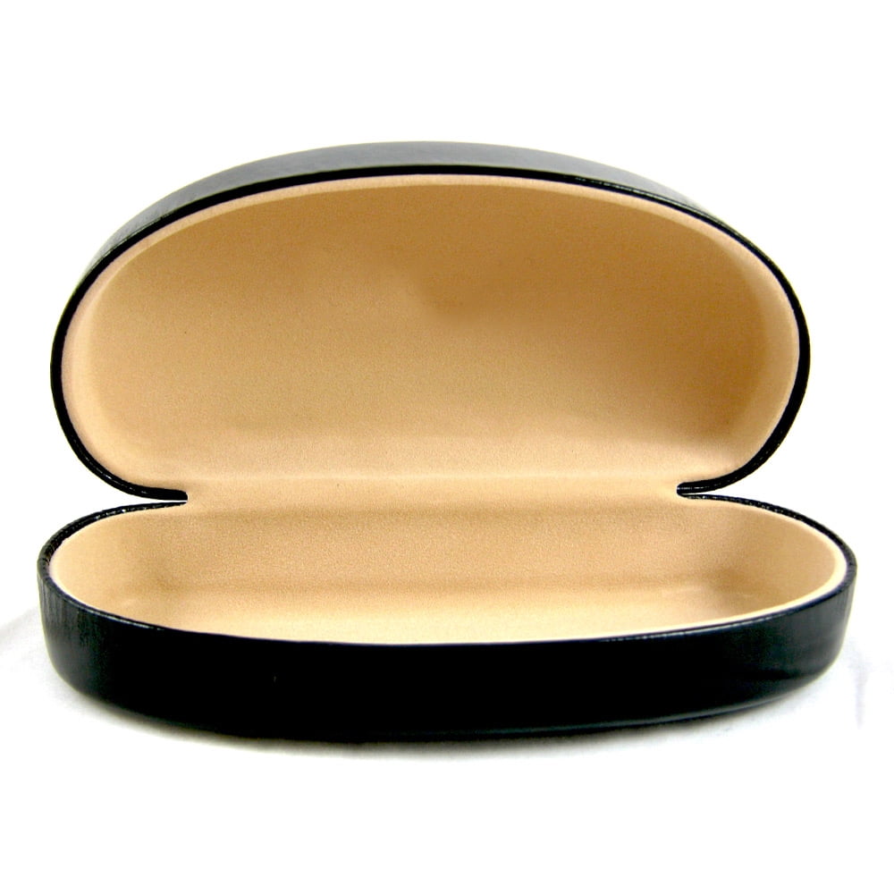 Carry your glasses or sunglasses in style with this classic style black leatherette clam shell case.