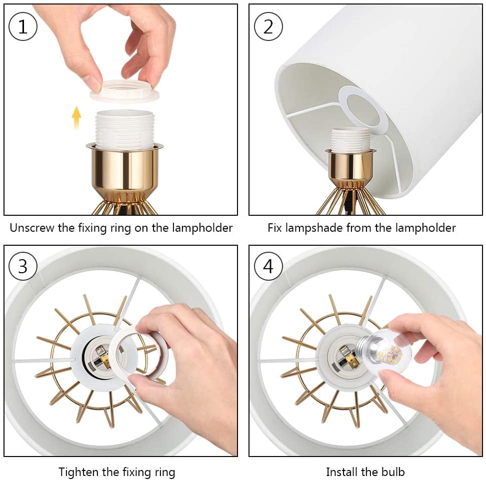 The nightstand table lamp is constructed of high-quality metal frame and linen shade that provide a modern stylish feeling. It’s a great desk lamp office, reading desk lamp, kids room lamp, girls room lamp, living room lamp, kitchen lamp, essentially anywhere that is needed for added brightness. The gold table lamp looks modern but also retro with gold chrome metal basket cage style base and fabric lampshade, never out of fashion. Its modern gold chrome metal basket cage style and warm comfortable light creates the romantic and elegant atmosphere, which is unique decoration wherever you put.