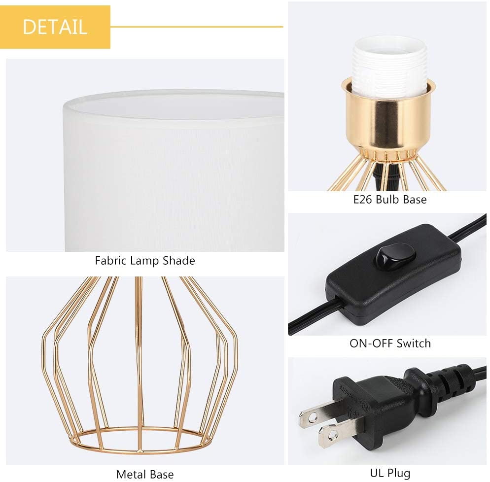 - [Simple & Minimalist Design] The gold table lamp looks modern but also retro with gold chrome metal basket cage style base and fabric lampshade, never out of fashion. Its modern gold chrome metal basket cage style and warm comfortable light creates the romantic and elegant atmosphere, which is unique decoration wherever you put it in.