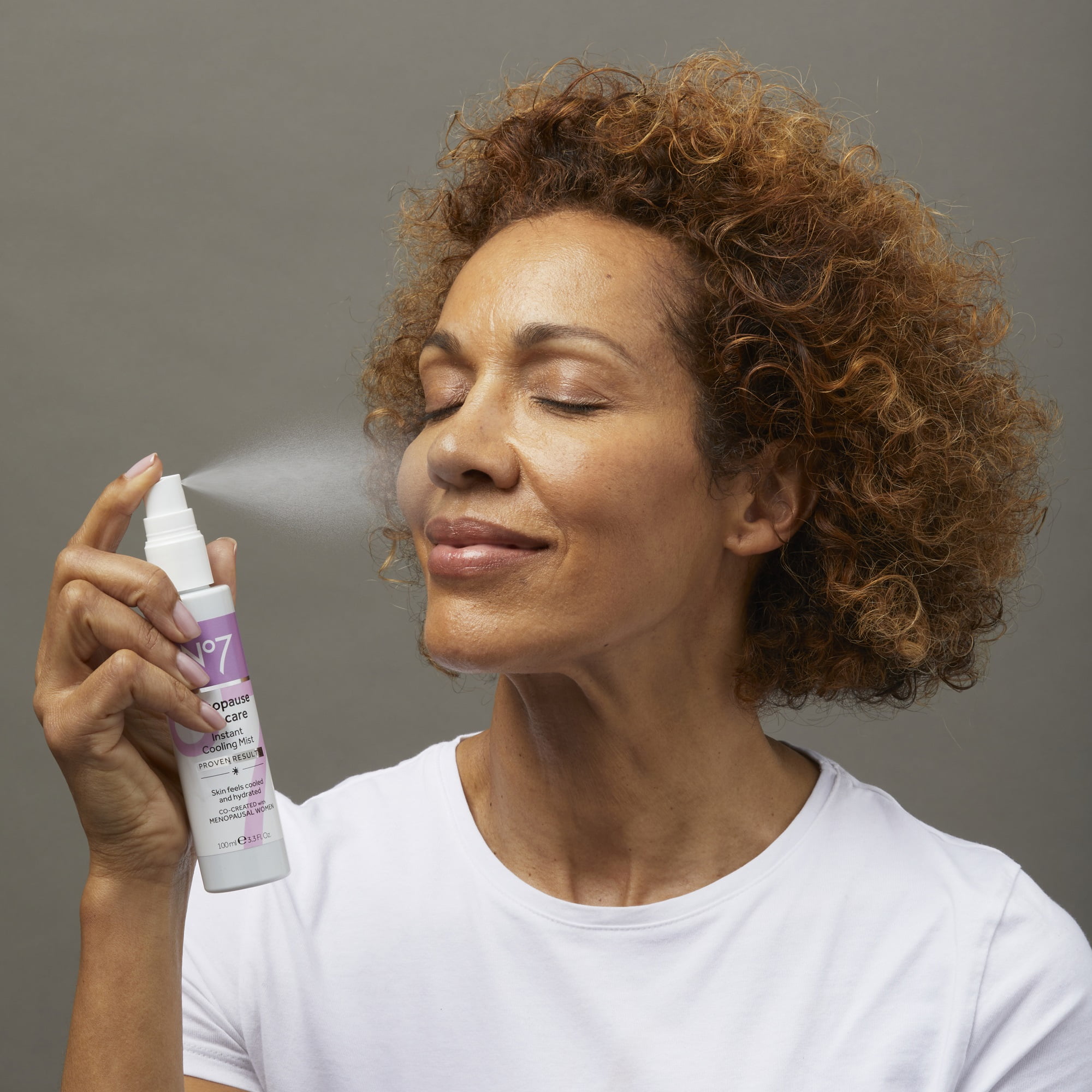 No7 Menopause Skincare Instant Cooling Mist is co-created with menopausal women and dermatologist approved for menopausal skin. Bringing calmness to hot, flushed skin, this mist leaves skin feeling instantly cooled and looking more radiant. 92% of women agree No7 Menopause Skincare Instant Cooling Mist made their skin feel instantly cool , even when using during a hot flush. Suitable for sensitive skin, this mist is formulated to hydrate skin, leaving the face looking refreshed and radiant after use.