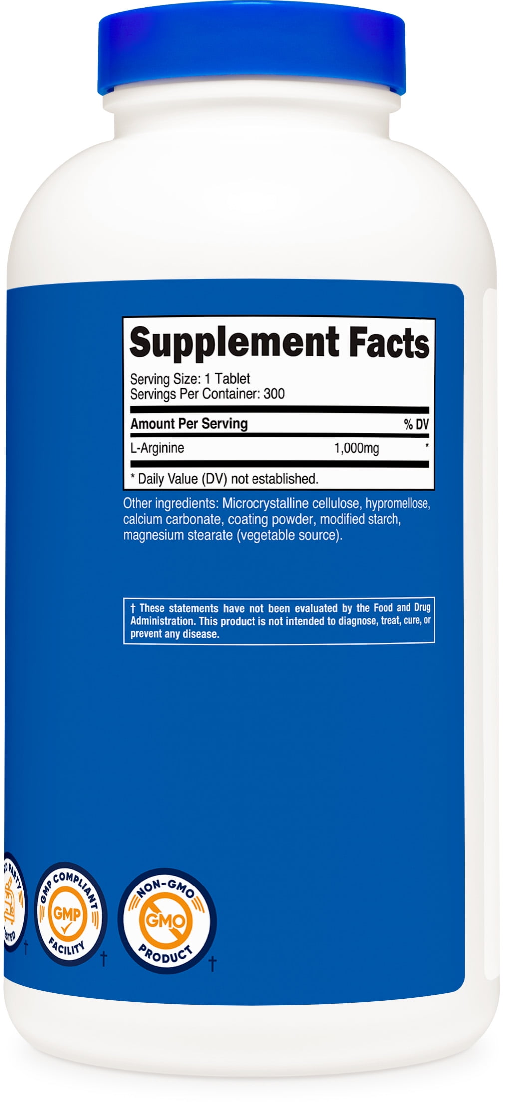 Nutricost L-Arginine tablets come in 1000mg tablets, are pharmaceutical grade, and are non-gmo. Arginine is a conditionally essential basic amino acid involved primarily in urea metabolism and excretion, as well as in DNA synthesis and protein production and an important precursor of nitric oxide (NO).* It plays an important role in the dilation of blood vessels.