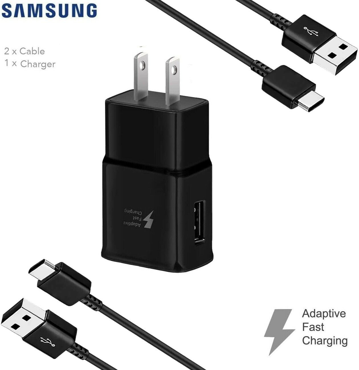 OEM Adaptive Fast Wall Charger for Samsung Galaxy A21 Bundled with 2x Type C/USB-C Cables 4 Feet – Black