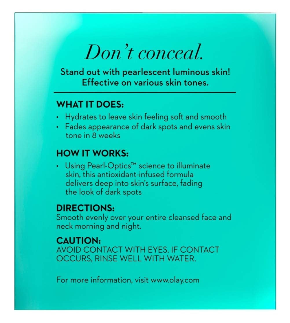 Let your skin concerns fade away. Reveal your most pearlescent beautiful skin with Regenerist Luminous Tone Perfecting Cream. This lightly-scented fast-absorbing moisturizer hydrates your skin. Over 8 weeks its formula with a brightening complex fades the look of dark spots age spots sun spots and discoloration evening your overall skin tone. Simply massage the moisturizing cream into your skin each morning before applying make-up and at night after cleansing. Experience bright beautiful healthy-looking skin every day with Olay Regenerist Luminous Tone Perfecting Cream. Smooth evenly over your entire cleansed face and neck morning and evening. As with all skin care products, avoid direct contact with eyes. If contact occurs, rinse with water.