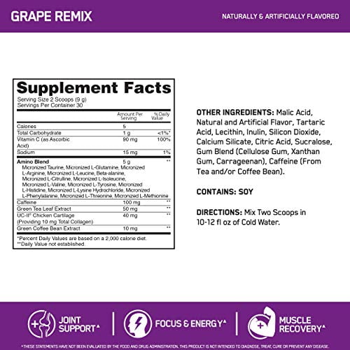 Optimum Nutrition, Essential Amino Energy Plus UC-II Collagen, Powder, Grape Remix , 9.5 oz