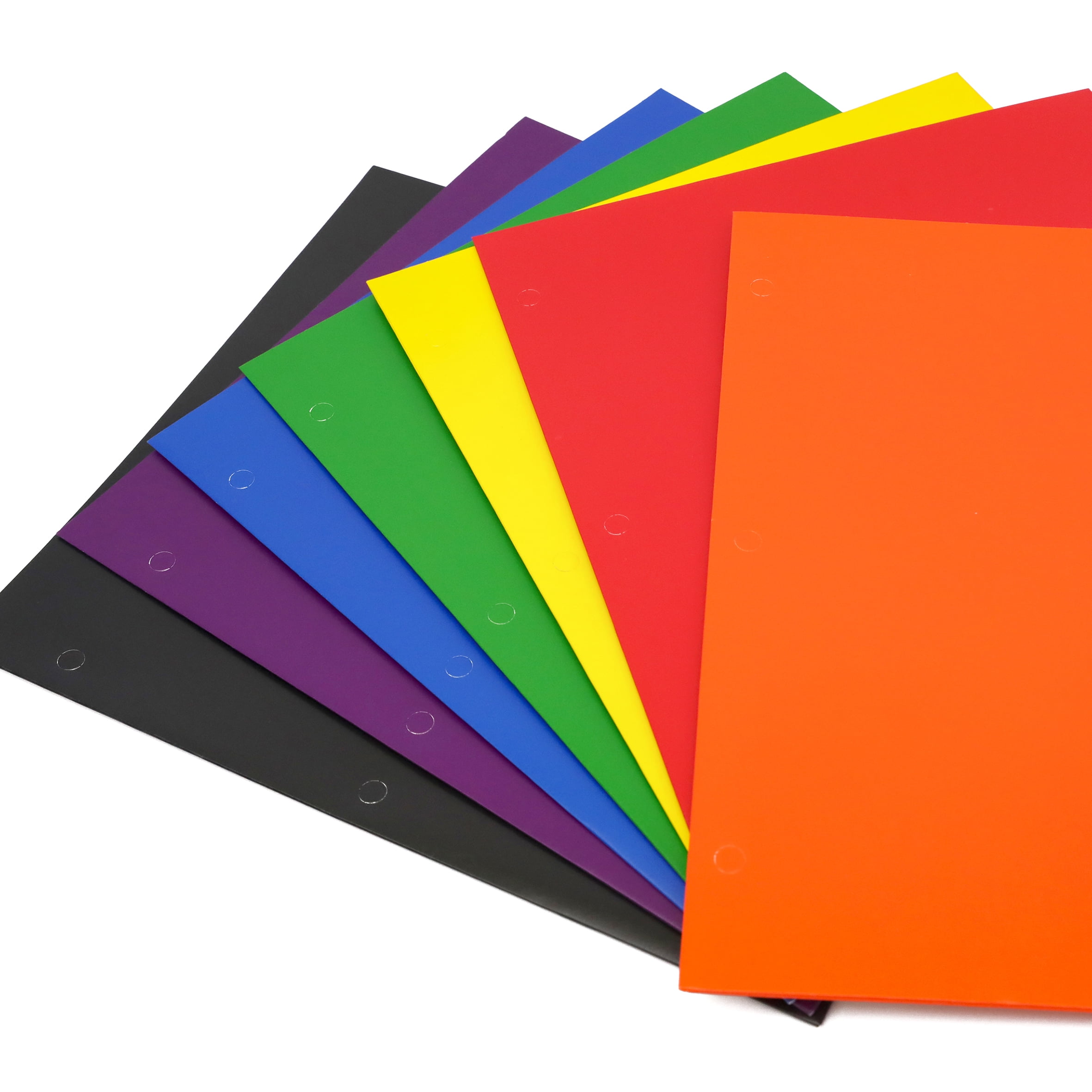 Keep important papers in one place with these two pocket paper folders. This 7 count package has assorted solid colors in: black, blue, purple, green, red, yellow and orange. These folders are ideal for back-to-school and for use in your office. Students and teachers love these folders.