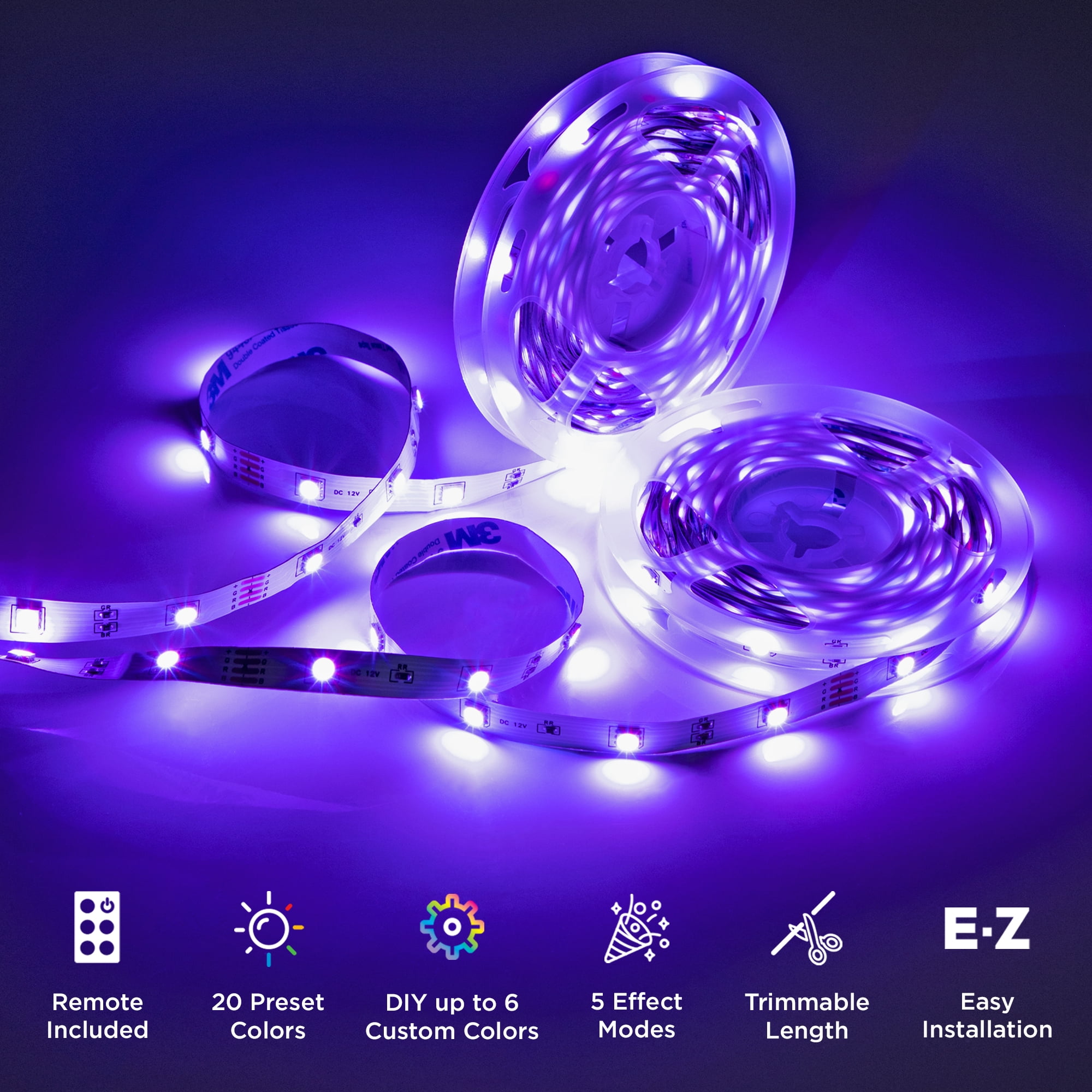60ft(2 rolls of 30ft) led lights support Bluetooth APP and remote control. Just a touch of your finger, wonderful atmosphere you like will be created by multi colors. Especially when the color changing sync with music at the party, which is definitely a perfect experience.