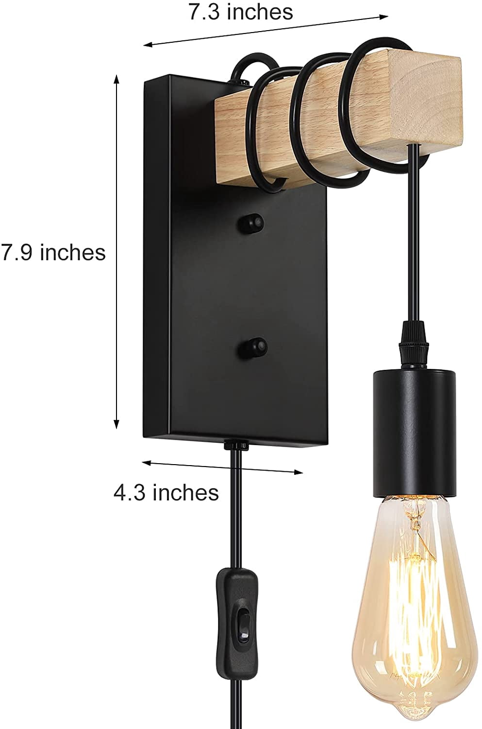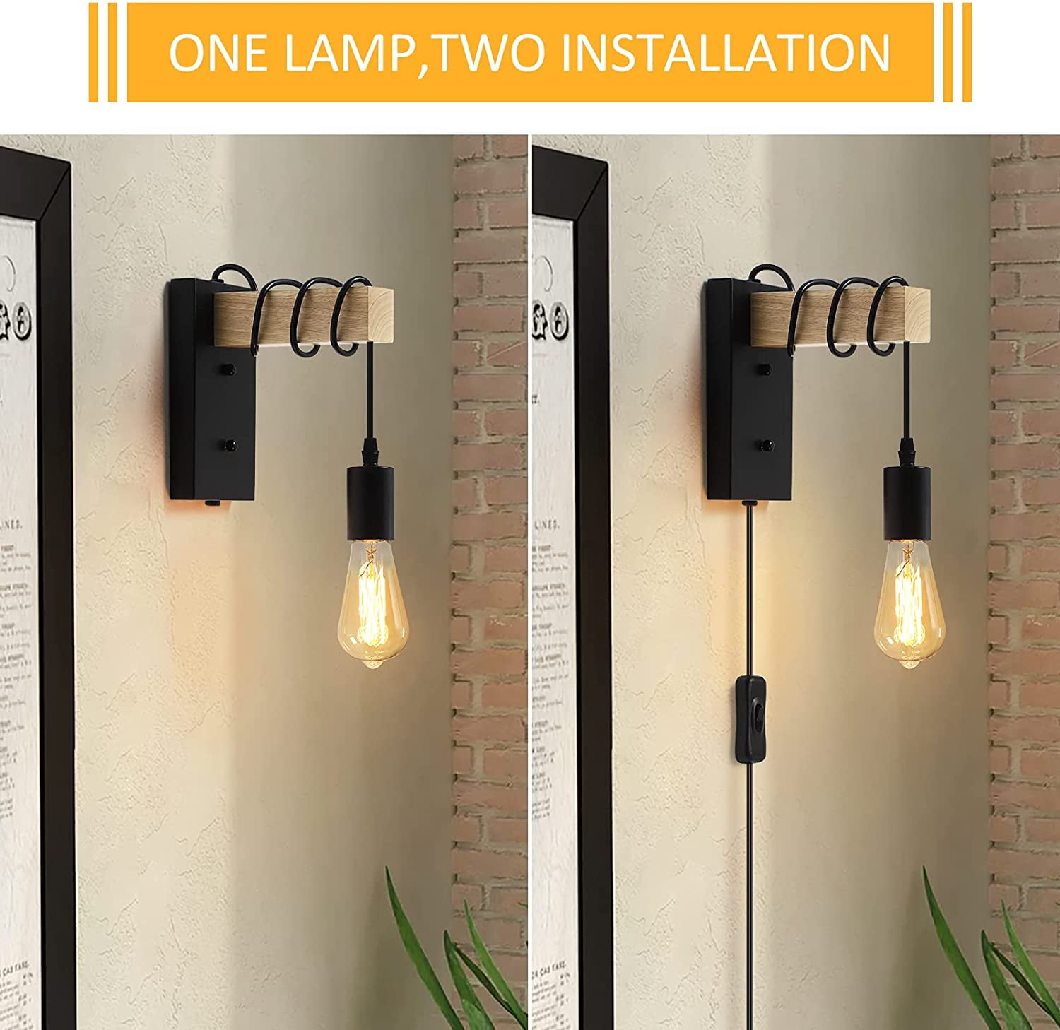 Plug in Wall Sconces, Industrial Wall Lamp with Solid Wood, Plug in or Hardwired Sconce Lighting Fixtures, Edison Vintage Wall Mounted Lighting for Bedroom Living Room Indoor Doorway. The Nova Juns wall lamp gives off warm, beautiful light that will create a comfortable and warm space for any room in your home. Depending on the type of light bulb used, a special shape or an interesting light color can also affect the look of the lamp. Or how about using different sized bulbs? Let your imagination run wild.