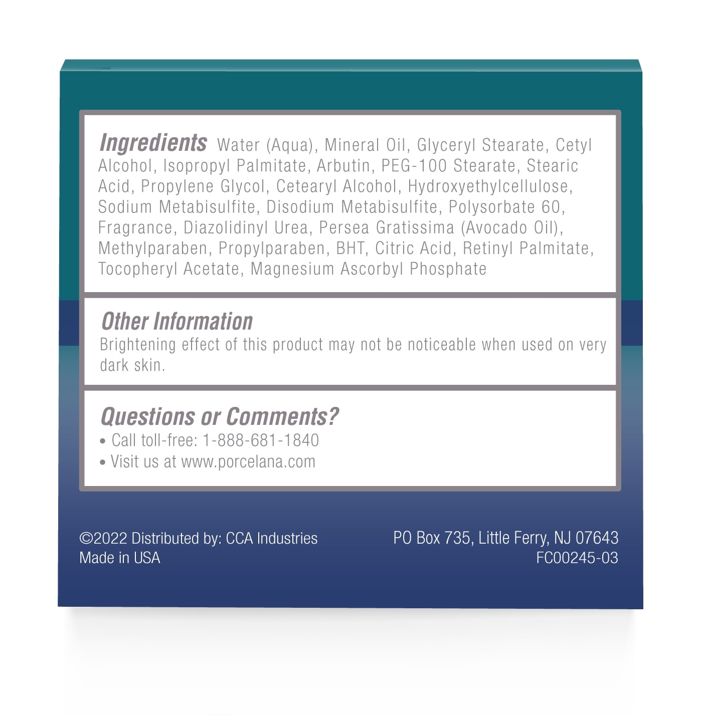 Porcelana Skin Lightening Cream Nighttime Hydration Moisturizer, 3 oz.: