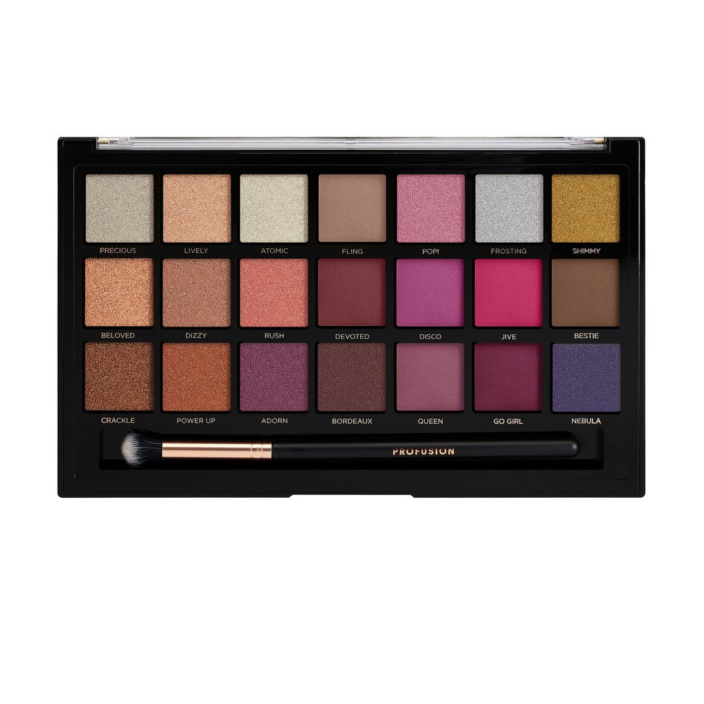 Embark on an adventure of boundless creativity with this multi-finish, Wanderlust Eyeshadow Platte. The highly pigmented and blendable shades range from a spectrum of pinks to deep greens and bright blues to earthy browns. Perfect for everyone from beginners to pros and stunningly suitable for all skin tones. Pro Series Brush included.Take your eye looks to the next level with this 21-shade, multi-finish eyeshadow palette!Features a variety of shades in different finishes to customize your look.Ultra-blendable pigments can be worn alone or layered for stunning definition.Includes dual-ended Pro Series Brush for quick and easy application.Ideal for a wide variety of skin tones.Do you love creating a diverse array of eye looks, but hate the inconvenience of having several eyeshadow compacts in your makeup kit? The Pro Pigment eyeshadow palette from Profusion Cosmetics offers a solution. Boasting more than 20 pro pigment shades, this eyeshadow palette has everything you need to create bright, defined eyes that are perfect for every occasion, and the dual-ended Pro Series brush makes masterful application fast and easy, every time. The palette includes both matte and shimmer shadows that are easy to apply and blend, allowing you to achieve customized looks that are suitable for your unique skin tone. This affordable eyeshadow palette is a must-have addition to your cosmetics case ? order yours online now!Includes:1 Pro Pigment eyeshadow palette21 eyeshadow shades1 dual-ended eyeshadow brushPro Pigment ? A combination of shimmering opals, rich berries, bright pinks and soft, wearable violets.