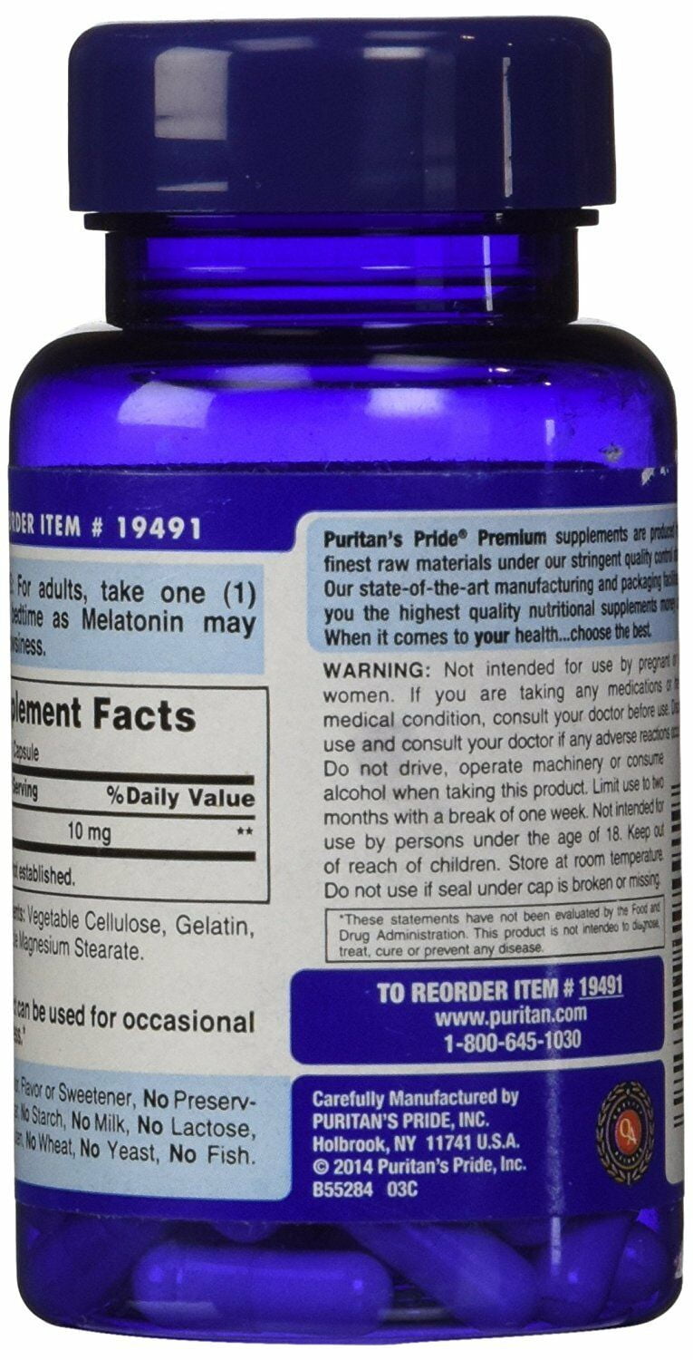 Puritan’s Pride Melatonin 10 mg Sleep Aid 60 Capsules MADE IN USA (2 PACK)