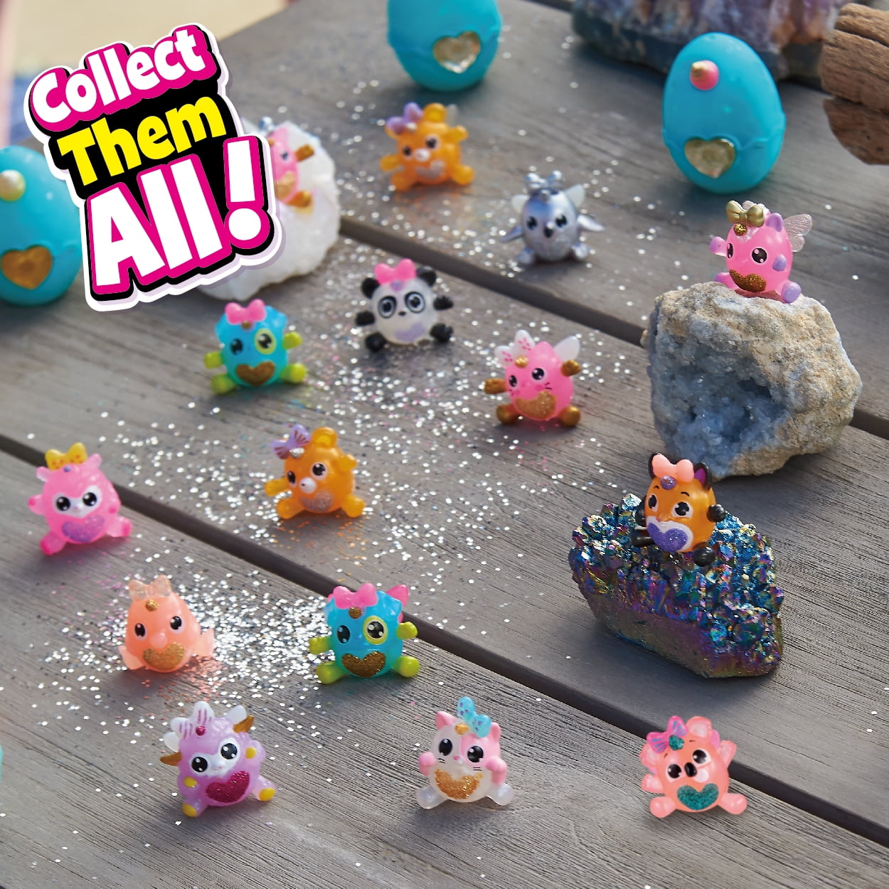- SO MANY GLITZY SURPRISES TO FIND: Each Itzy Glitzy egg has different surprises to find! There are hair clips, rings, wings and pop and swap heart gems to collect! Mix and match, and collect them all!