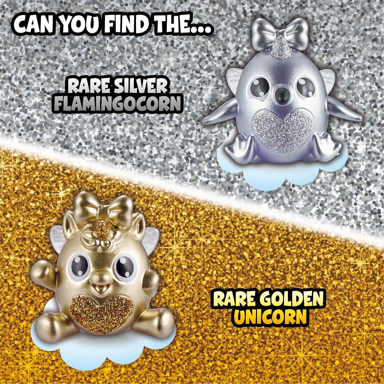 - FIND THE RARE ITZY GLITZY’S: There are 26 Itzy Glitzy’s to collect, including Blinger the rare silver flamingocorn and Queenie the rare golden unicorn! Who will you find!