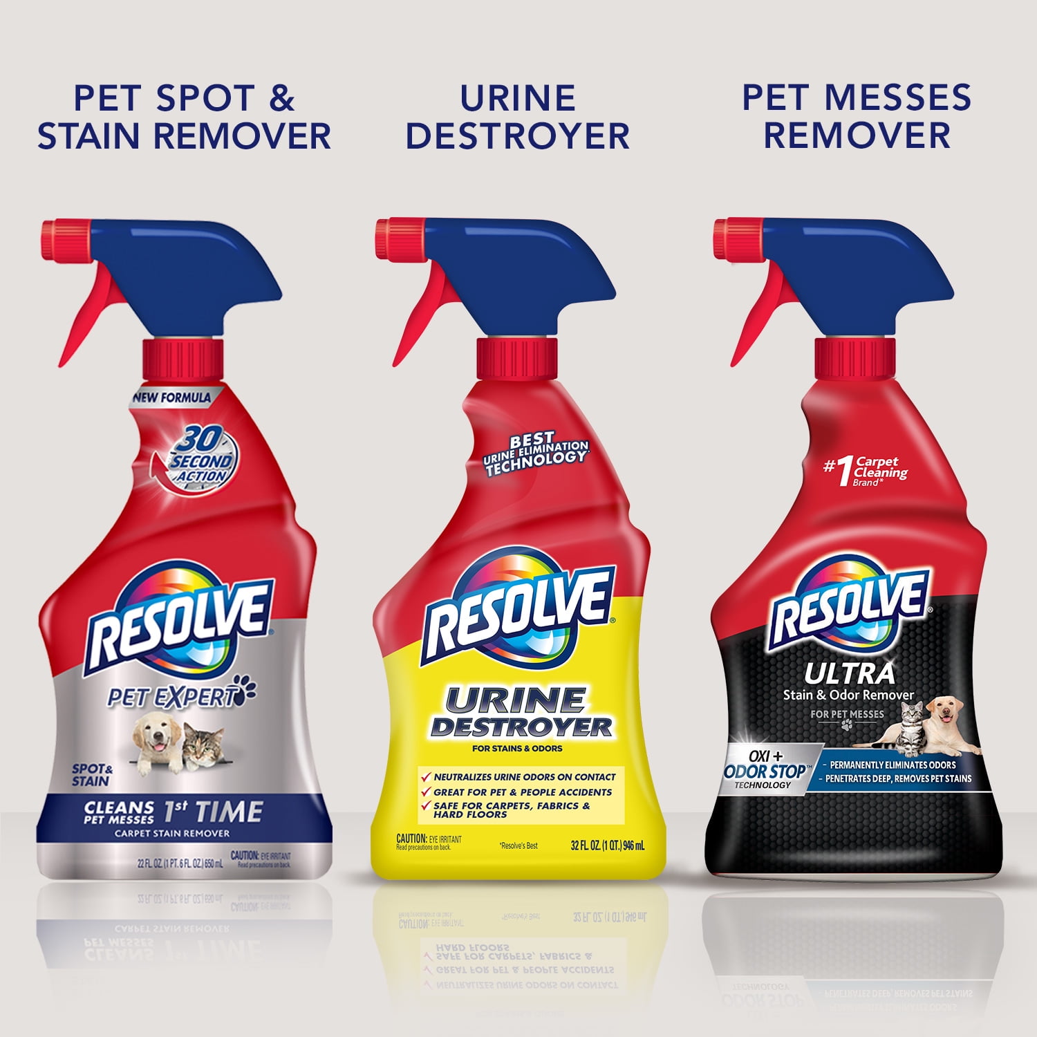 At RESOLVE, we love our furry friends as well & we understand that keeping your carpets clean can be challenging. RESOLVE Ultra Urine Stain & Odor Eliminator, for Pet Messes, which helps you take care of these accidents. Penetrates Deep, to break down, lifts & permanently removes tough urine stains Powerful Odor Stop Technology: Permanently Eliminate urine odors Discourages Pet Re-soiling.