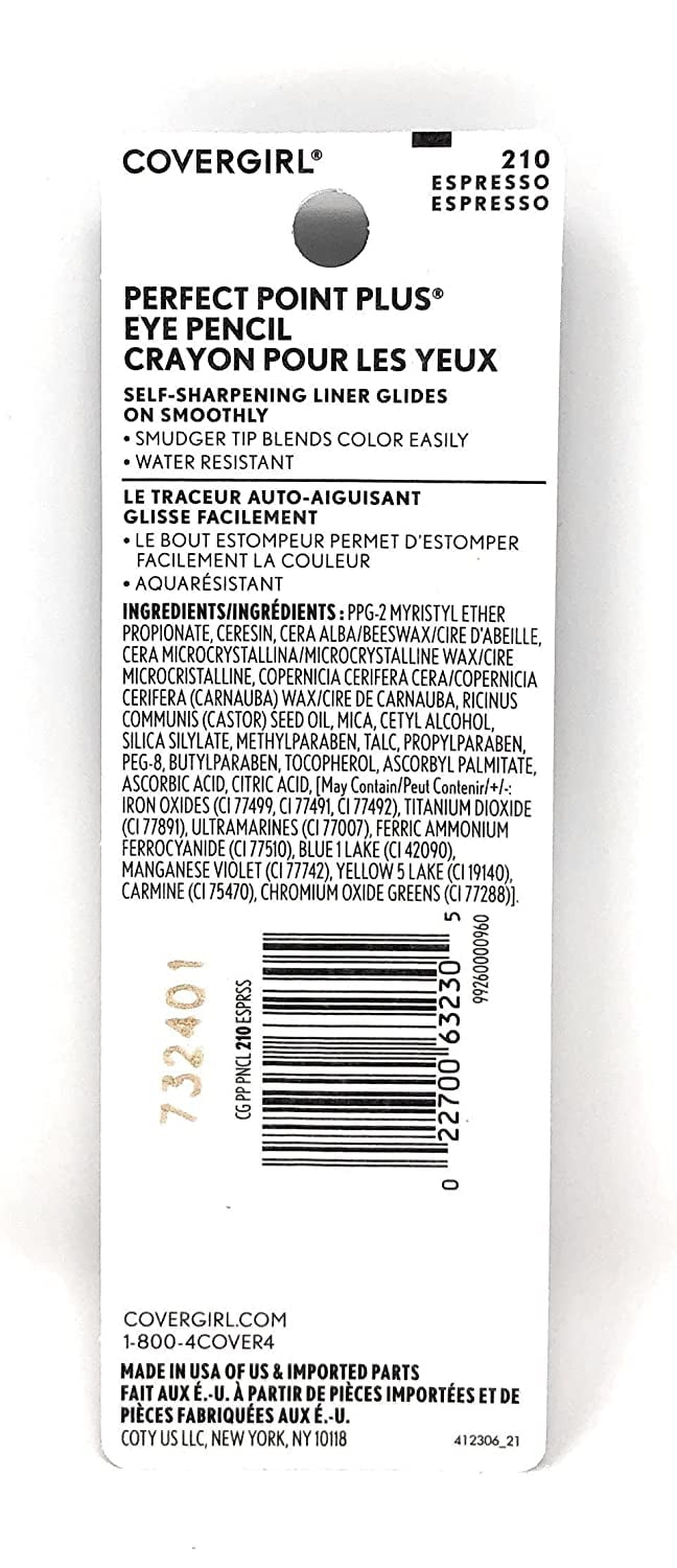 CoverGirl Perfect Point Plus Self Sharpening Eye Pencil, Espresso [210], 0.008 oz (Pack of 2)