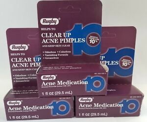 Rugby Acne Medication Benzoyl Peroxide Lotion 10% 1 oz (Pack of 3)