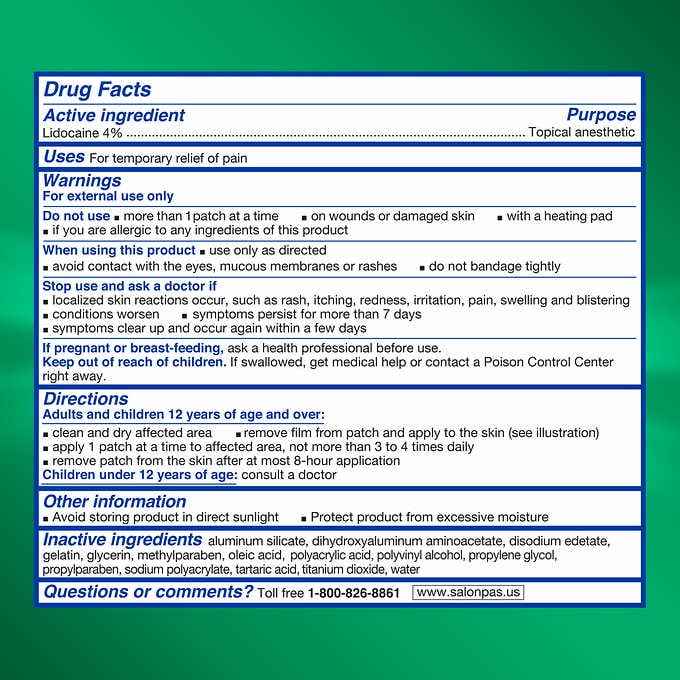 Salonpas LIDOCAINE 4% Pain Relieving Gel-Patch, 15 Gel-Patches