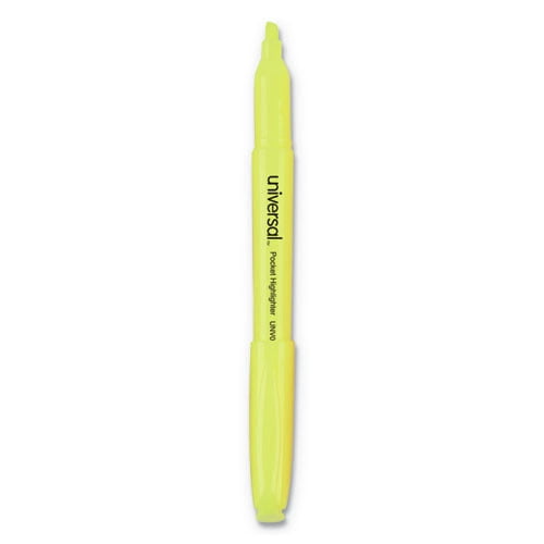 Universal Pocket Clip Highlighter, Chisel Tip, Fluorescent Yellow Ink, Dozen -UNV08851