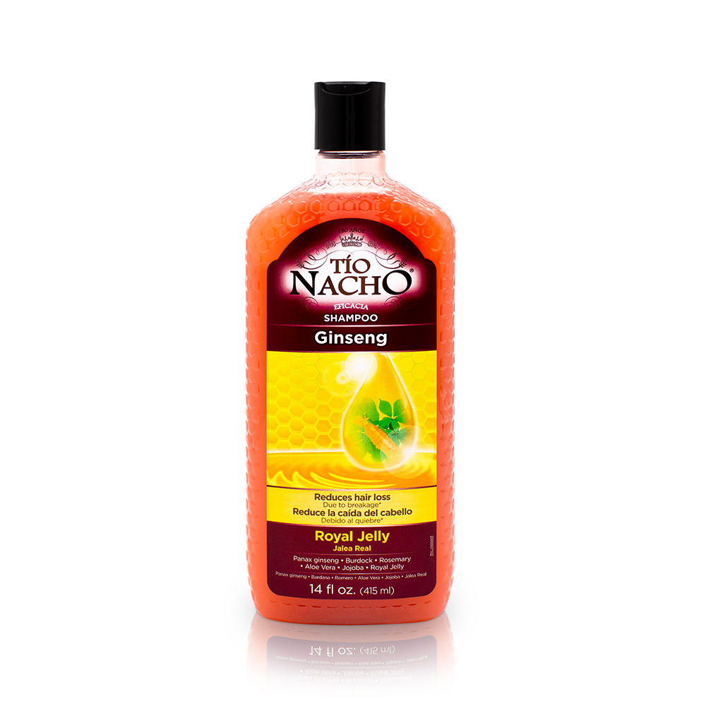 Uses: Tio Nacho, developed Ginseng shampoo with Royal Jelly, Ginseng and other extracts from natural original that helps reduce hair loss, revitalize, nourish and strengthen hair fiber. Ginseng extract:?Provides sheen, lightness and softness. With antioxidant properties, rosemary extract:?Strengthens the hair fiber, aloe Vera extract:?Revitalizes hair from the root, jojoba extract:?smooths, royal Jelly:?Nourishes and hydrates. Ingredients: Aqua, Sodium Laureth Sulfate, Dimethyl Lauramide/Myristamide, Cocamidopropyl Betaine, Royal Jelly Extract, Panax Ginseng Root Extract, Aloe Barbadensis (Decolorized) Extract, Arctium Lappa Root Extract, Rosmarinus Officinalis Extract, Simmondsia Chinensis Seed Extract, Sodium Chloride, Parfum, Polyquaternium-7, Guar Hydroxypropyltrimonium Chloride, Glycol Distearate, Citric Acid, Dmdm Hydantoin, Disodium Edta Carbocysteine, Polyquaternium-10, Hydrolyzed Wheat Protein, Methylchloroisothiazolinone, Methylisothiazolinone, Dec Red 33 (Ci 17200), Fd&C Red 40 (Ci 16035), Fd&C Yellow 5 (Ci 19140), Fd&C Blue 1 (Ci 42090), Hexyl Cinnamal, Limonene, Geraniol. How to apply: Apply generously to wet hair and massage gently onto scalp. Rinse and repeat if necessary.Use T?o Nacho Ginseng conditioner as the perfect complement to T?o Nacho Ginseng Shampoo. Warnings and Precautions:?Avoid contact with eyes. In case of eye contact, rinse repeatedly with water. Keep out of the reach of children Warnings and Precautions: We recommend that you do not solely rely on the information presented and that you always read labels, warnings, and directions before using or consuming a product. For additional information about a product, please contact the manufacturer. Content on this site is for reference purposes and is not intended to substitute for advice given by a physician, pharmacist, or other licensed health-care professional. You should not use this information as self-diagnosis or for treating a health problem or disease. Usos: Tio Nacho, desarroll? el champ? de Ginseng con Jalea Real, Ginseng y otros extractos de origen natural que ayuda a reducir la ca?da del cabello, revitalizar, nutrir y fortalecer la fibra capilar. Extracto de ginseng: Aporta brillo, ligereza y suavidad. Con propiedades antioxidantes, extracto de romero: Fortalece la fibra capilar, extracto de aloe vera: revitaliza el cabello desde la ra?z, extracto de jojoba: suaviza, jalea real: nutre e hidrata. Ingredientes:?Aqua, Sodium Laureth Sulfate, Dimethyl Lauramide/Myristamide, Cocamidopropyl Betaine, Royal Jelly Extract, Panax Ginseng Root Extract, Aloe Barbadensis (Decolorized) Extract, Arctium Lappa Root Extract, Rosmarinus Officinalis Extract, Simmondsia Chinensis Seed Extract, Sodium Chloride, Parfum, Polyquaternium-7, Guar Hydroxypropyltrimonium Chloride, Glycol Distearate, Citric Acid, Dmdm Hydantoin, Disodium Edta Carbocysteine, Polyquaternium-10, Hydrolyzed Wheat Protein, Methylchloroisothiazolinone, Methylisothiazolinone, Dec Red 33 (Ci 17200), Fd&C Red 40 (Ci 16035), Fd&C Yellow 5 (Ci 19140), Fd&C Blue 1 (Ci 42090), Hexyl Cinnamal, Limonene, Geraniol. Modo de aplicaci?n:Aplicar generosamente sobre el cabello mojado y masajear suavemente sobre el cuero cabelludo. Enjuaga y repite si es necesario, utiliza el acondicionador T?o Nacho Ginseng como complemento perfecto del shampoo T?o Nacho Ginseng. Contraindicaciones: No aplicar si el cuero cabelludo se encuentra lesionado o irritado. No utilizar si experimenta reacciones indeseadas. Evitar el contacto con los ojos y en caso de producirse lavar inmediatamente con abundante agua. No utilizar sobre cejas, pesta?as o ninguna parte del rostro.Revitalizes hair Strengthens fragile hair After the first application, hair feels fuller and stronger.