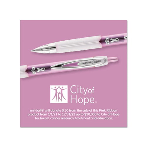 - Pink Comments – You can help uni-ball reach our goal donation of 200,000 or more to City of Hope for breast cancer research. 10 from each pen purchase will go toward that donation.