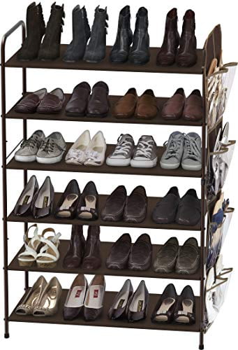 Simple Houseware 6-Tier Shoe Rack Storage Organizer w/ Side Hanging Bag, Bronze