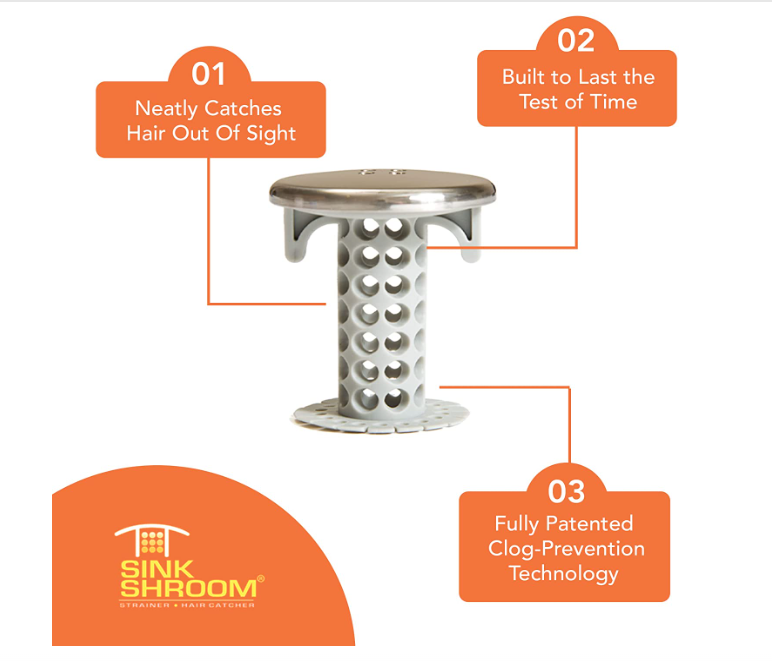 - Easy to Install, Easy to Clean: Pop the SinkShroom drain protector inside any standard 1.5" drain. Water flows through the device while it traps unwanted hair and debris. To remove it, pull it straight up and wipe away the hair and anything else that falls into the drain. Rinse it with soap and water, then place it back inside.