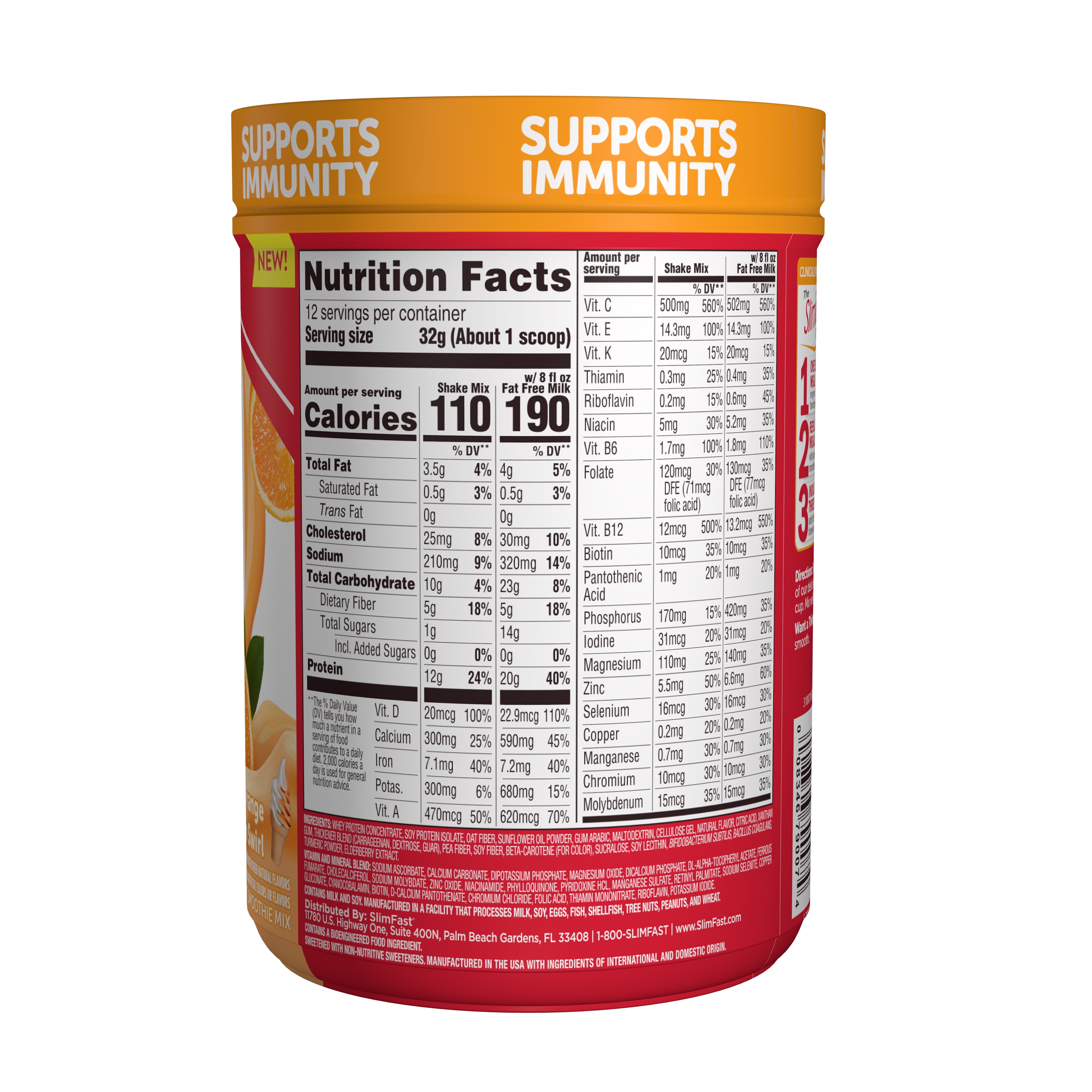 - A SlimFast Advanced Immunity creation full of your favorite refreshing orange and cream flavors PLUS the nutrition your body needs!