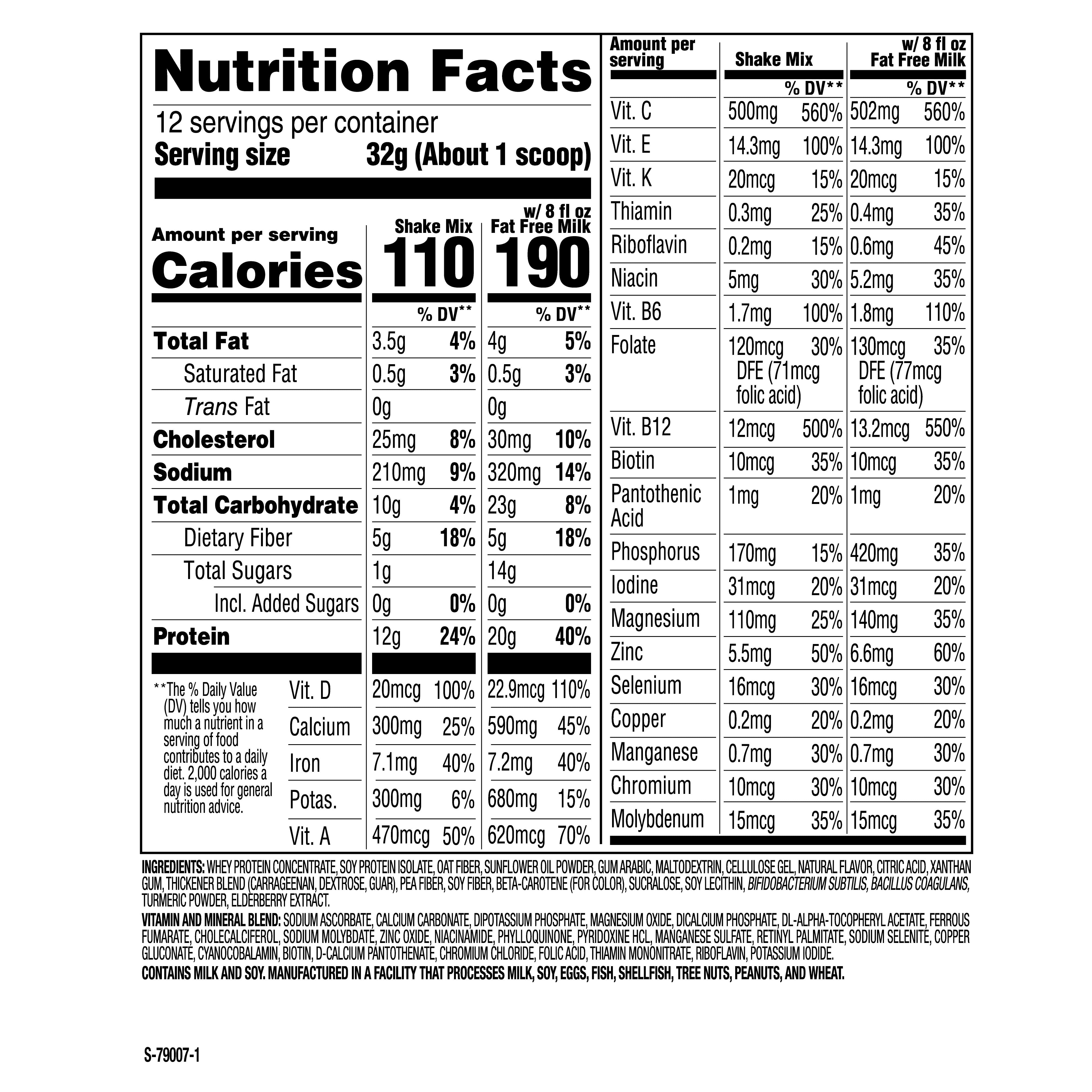 - 12 powerful servings per container, each packed with 5g of fiber and 20g of protein when added to milk.