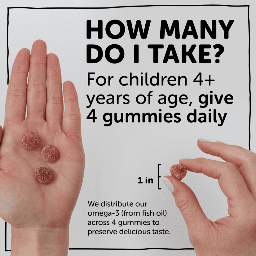 - Multivitamin gummies for kids with omega-3 EPA & DHA (essential fatty acids) sustainably sourced from wild-caught small fish